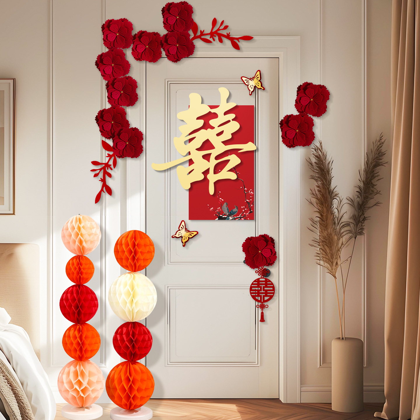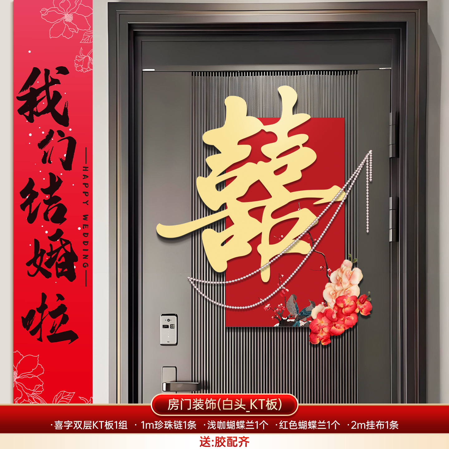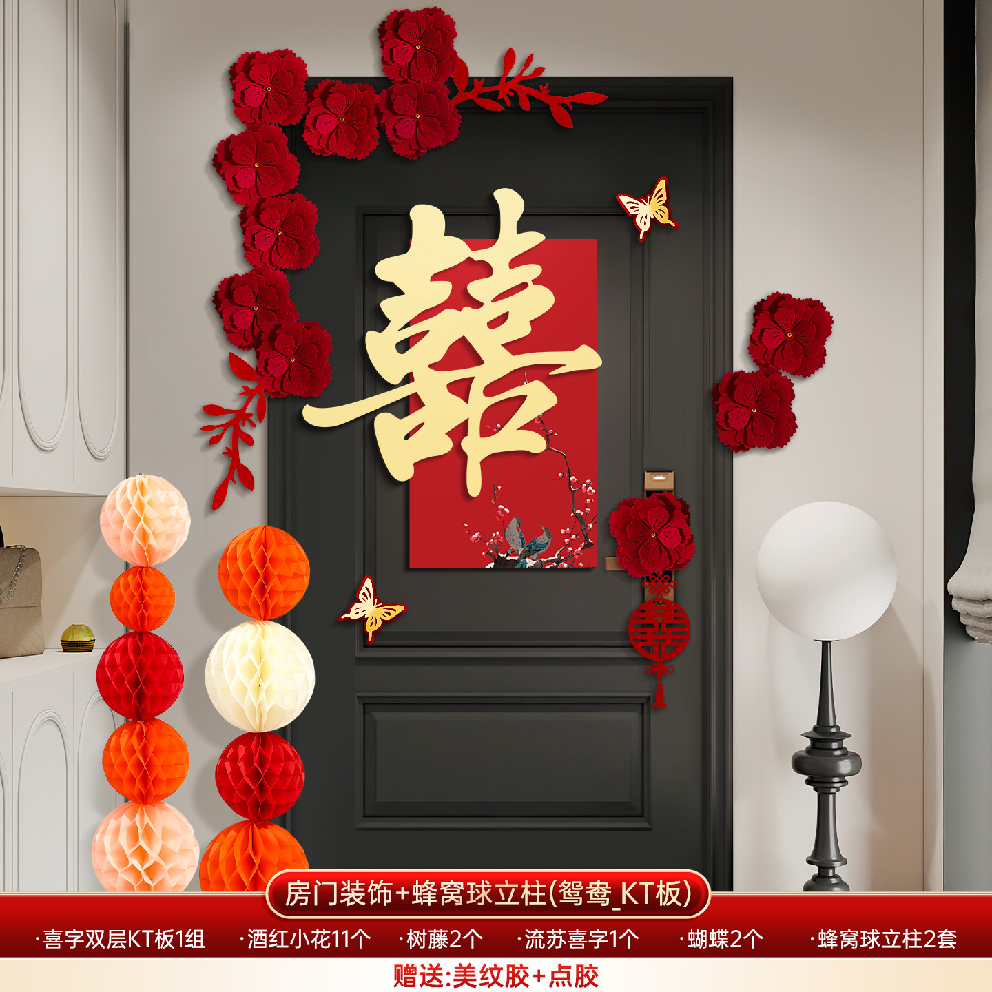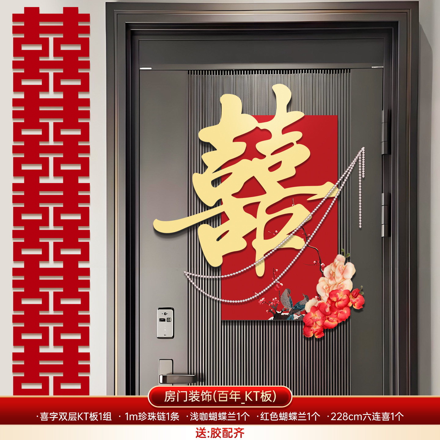 婚房布置套装喜字门贴结婚用品大全婚礼装饰女方男方卧室专用喜字结婚装饰高档酒红喜字门贴房门喜字贴女方卧室男方婚房布置喜字贴