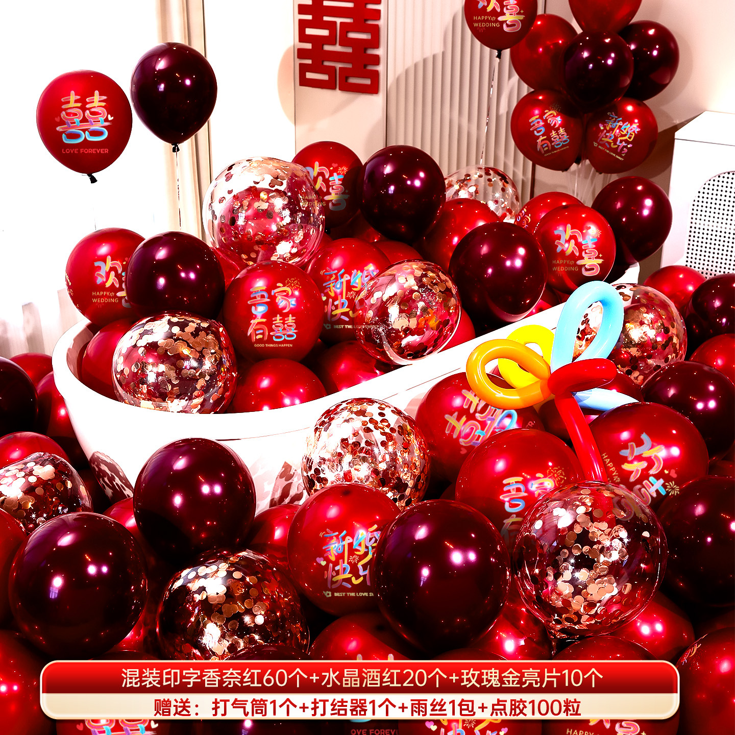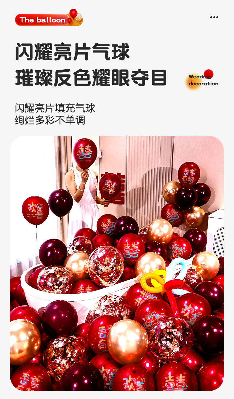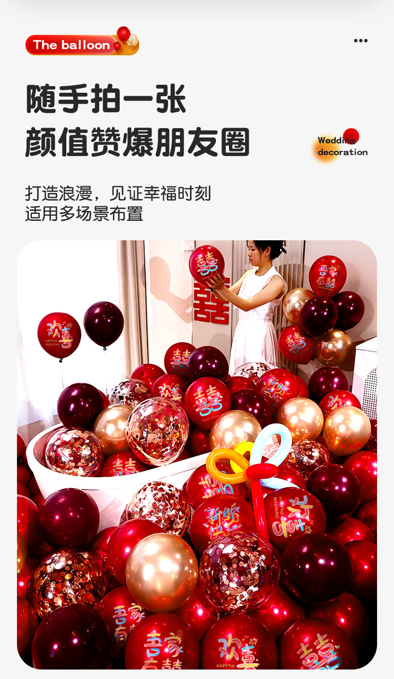 婚房布置气球结婚气球双层加厚石榴红宝石红气球婚礼订婚结婚用品气球结婚布置婚房装饰套装婚礼婚庆双层红色喜字气球场景订婚用品