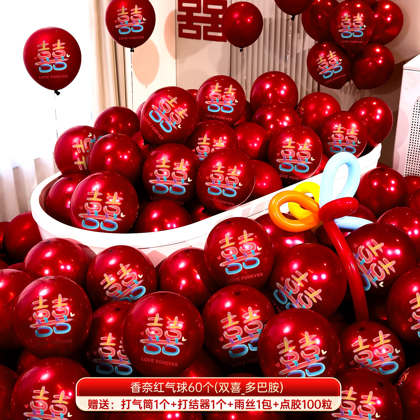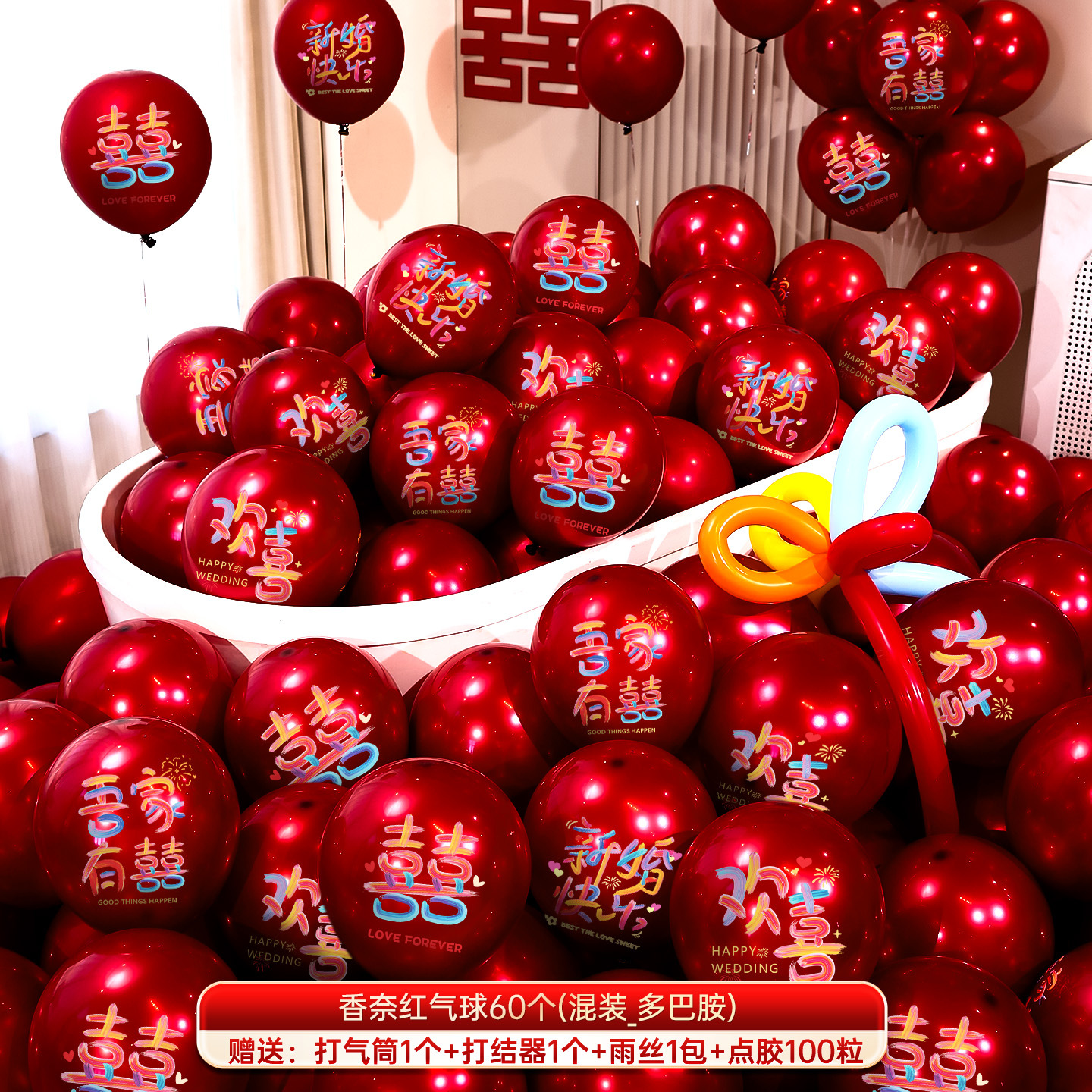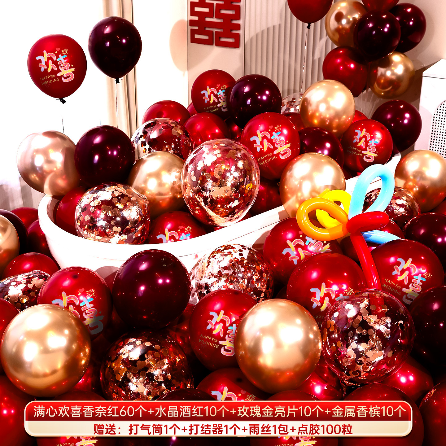 婚房布置气球结婚气球双层加厚石榴红宝石红气球婚礼订婚结婚用品气球结婚布置婚房装饰套装婚礼婚庆双层红色喜字气球场景订婚用品