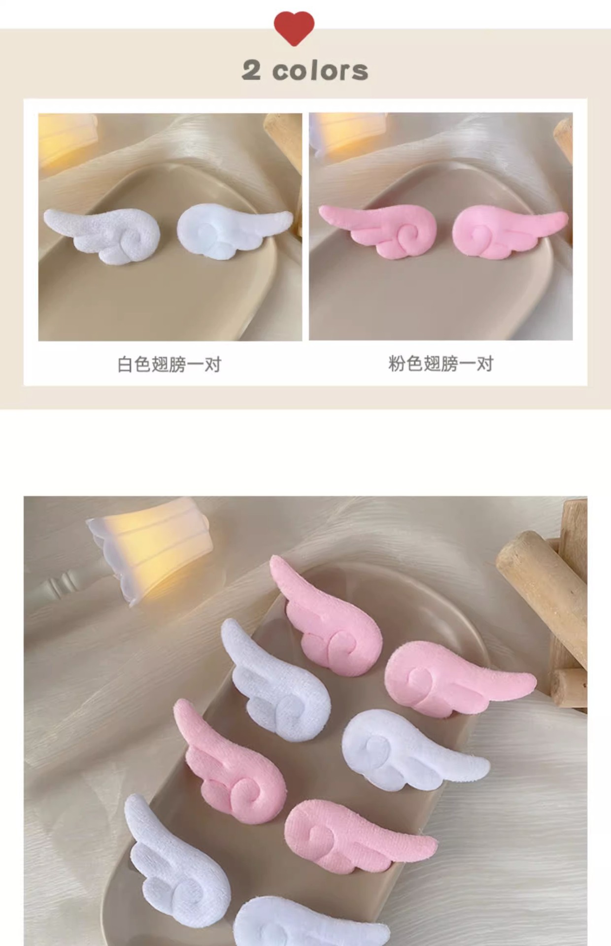 白色天使小翅膀边夹魔法少女发夹侧边夹可爱日系毛绒鸭嘴发卡头饰 English | 投诉