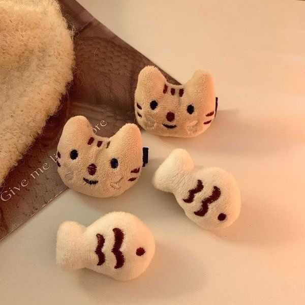 猫吃鱼~可爱毛绒小猫咪发夹头饰女刘海侧边发卡小号趣味发饰新款 English | 投诉