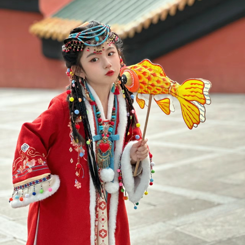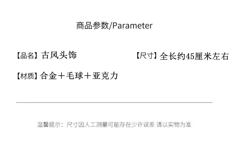 儿童毛球头饰女孩古风红色过年流苏新年发夹可编发汉服发卡国风 English | 投诉