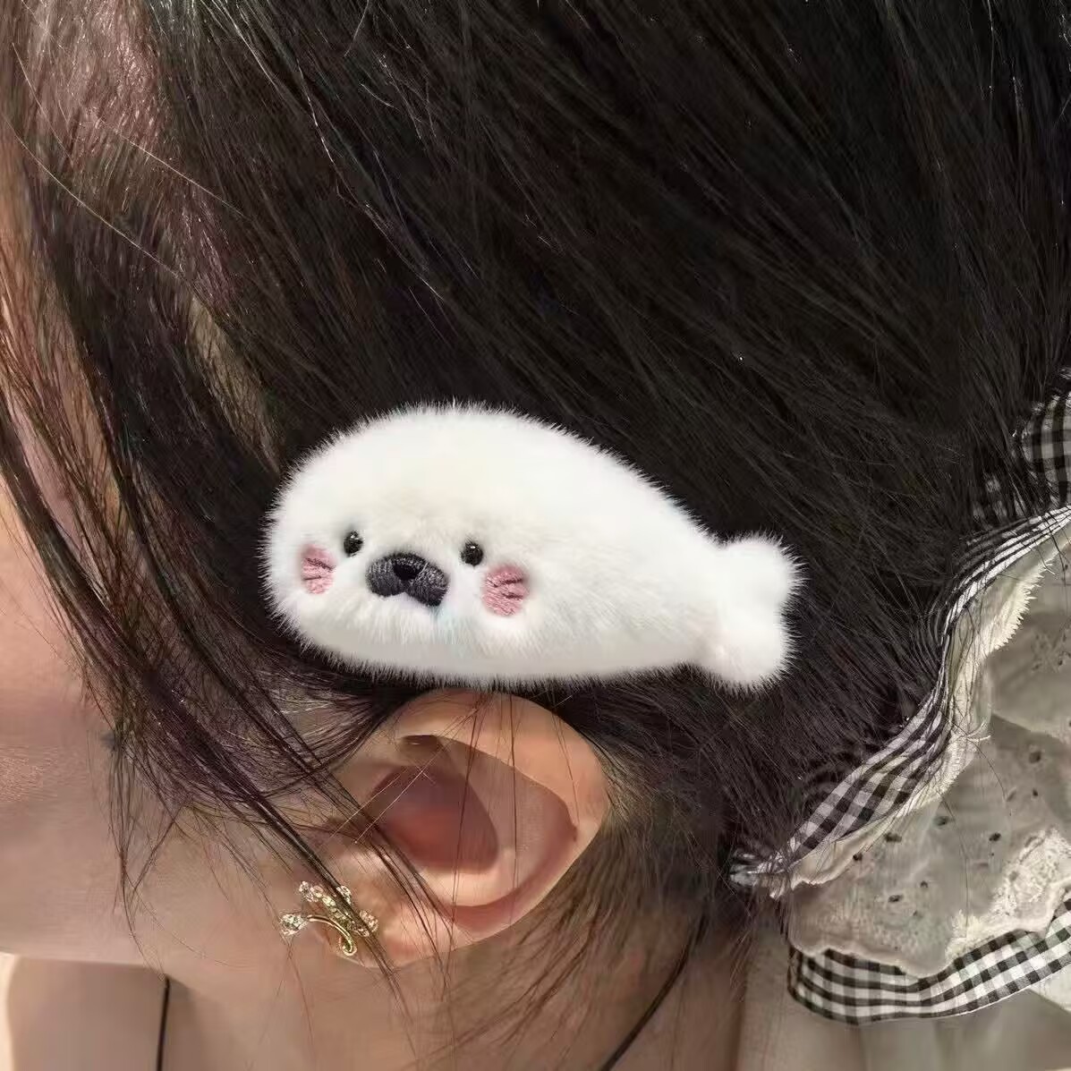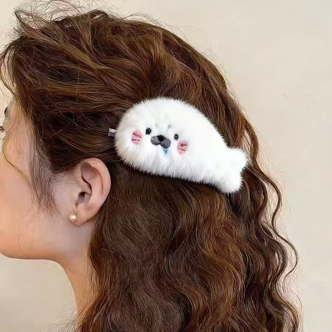 可爱毛绒小海豹发夹抓夹超萌简约少女心发饰侧边鸭嘴夹新款发夹 English | 投诉