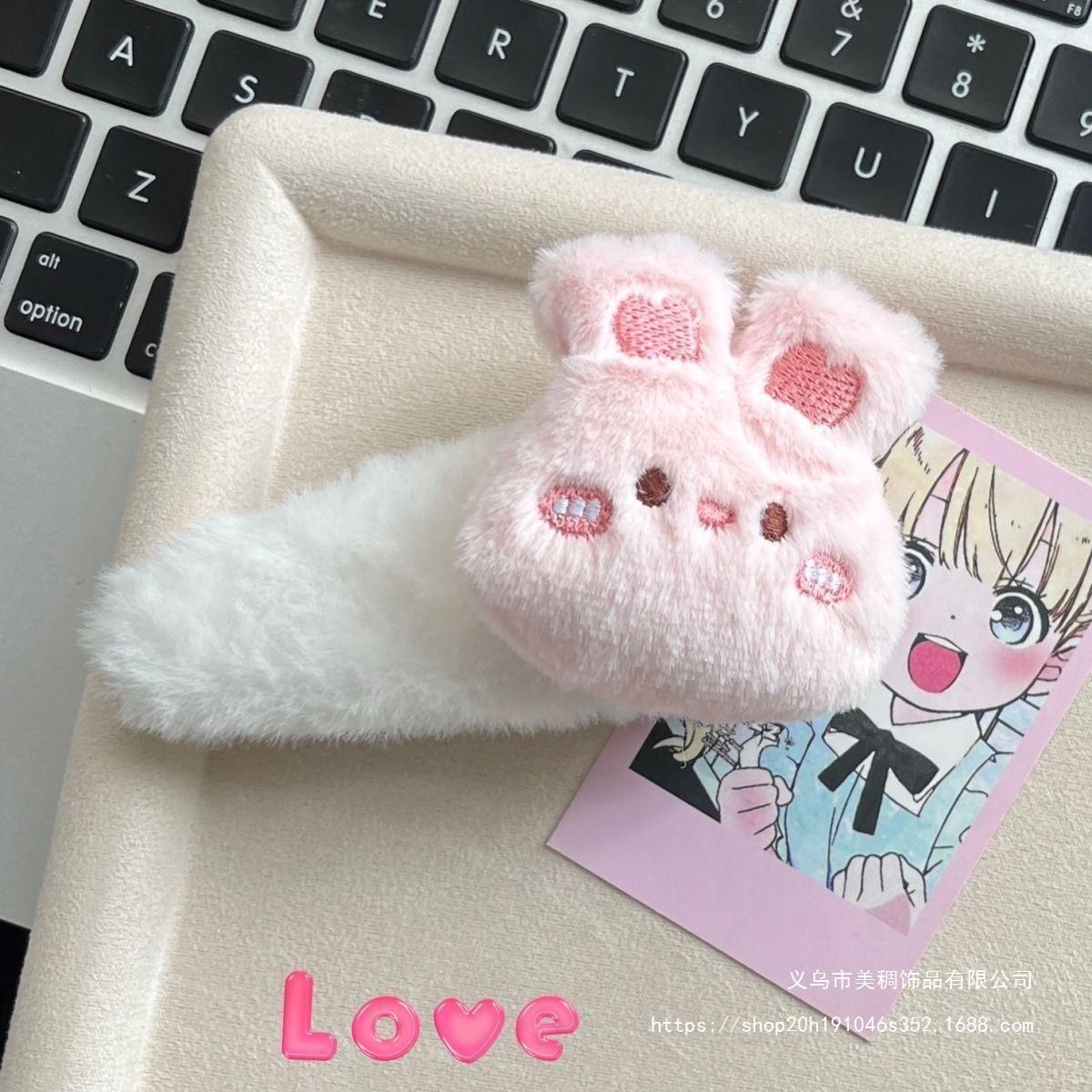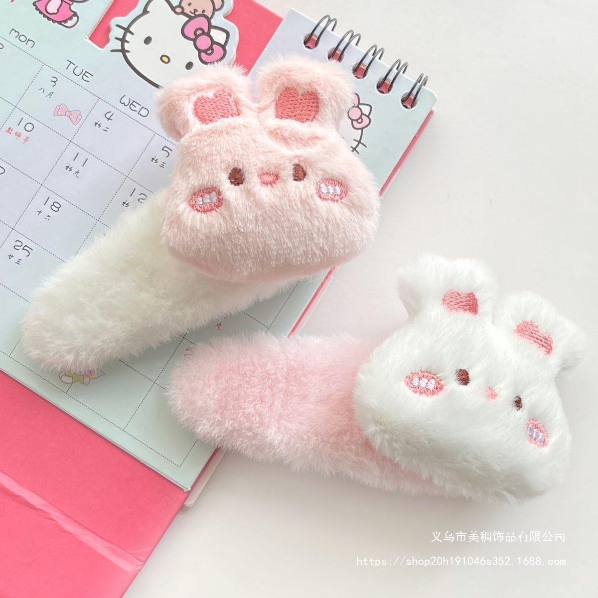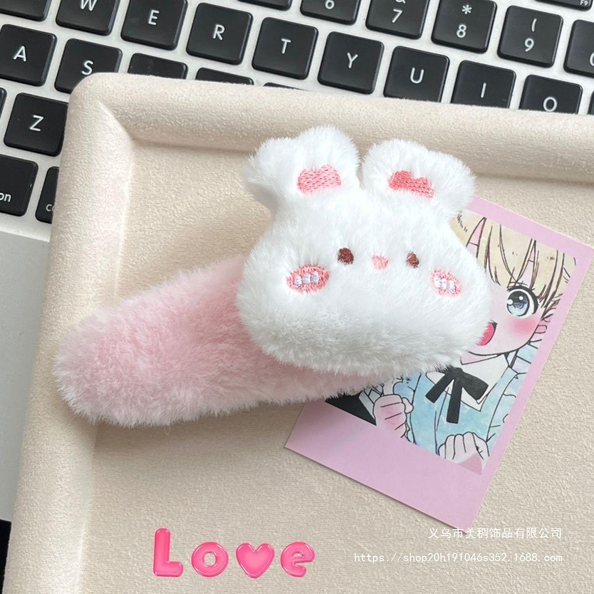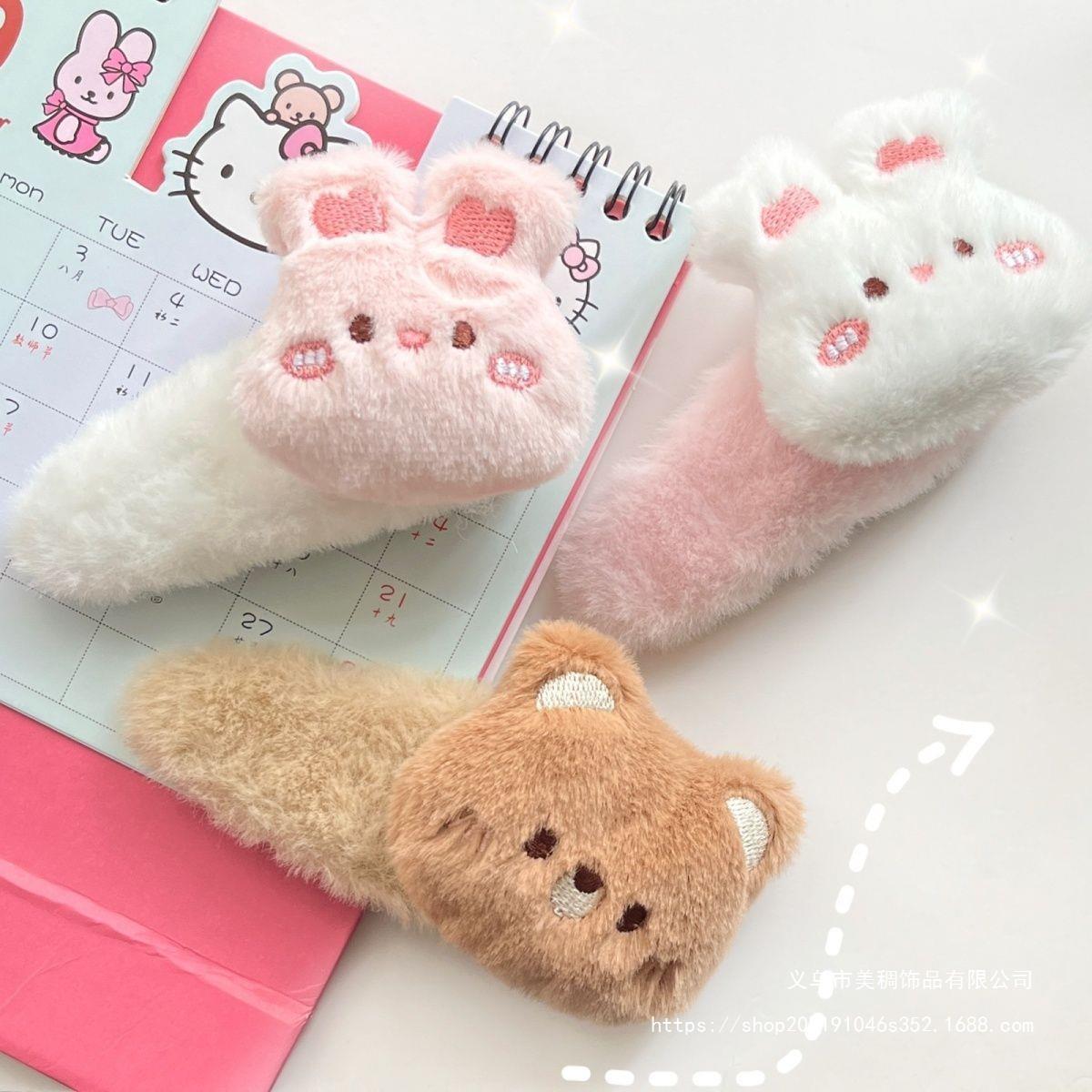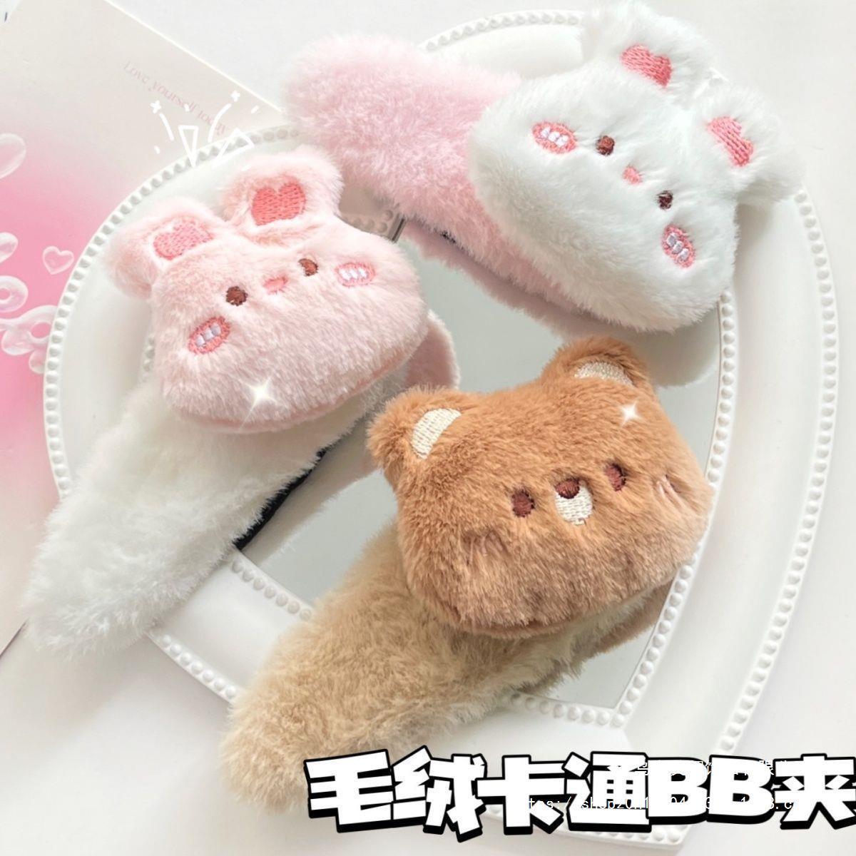 新款毛绒卡通小熊小兔大号BB夹可爱秋冬少女甜美边夹毛茸发饰发卡 English | 投诉