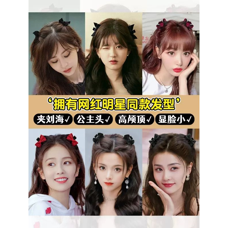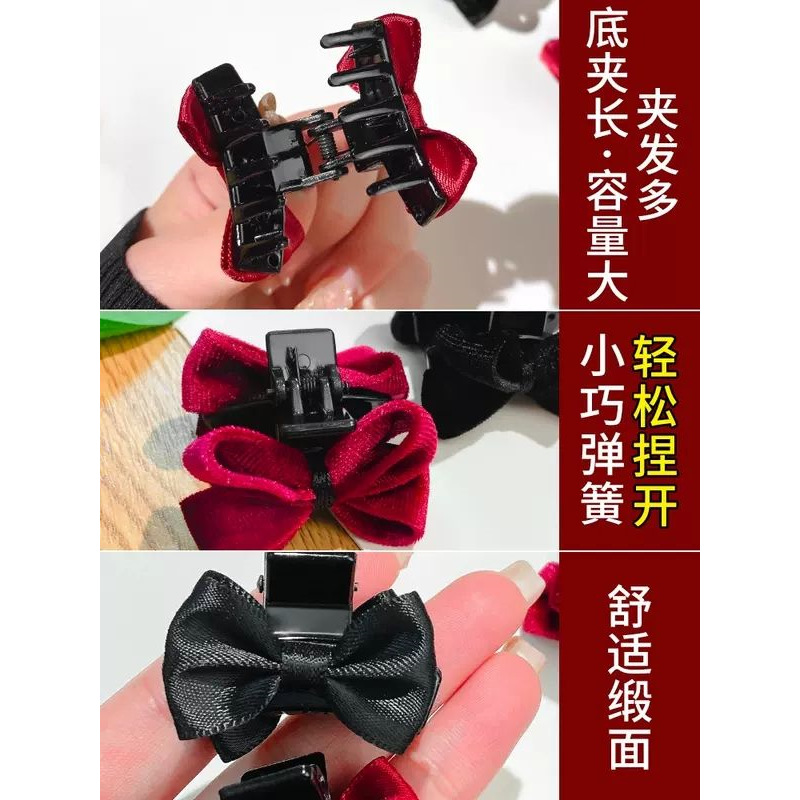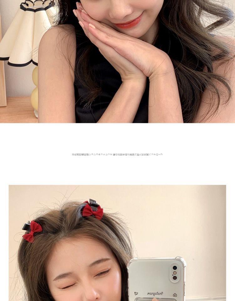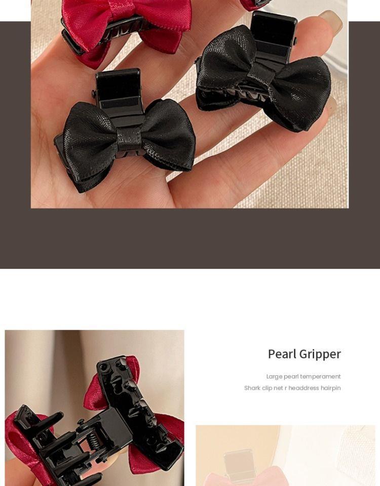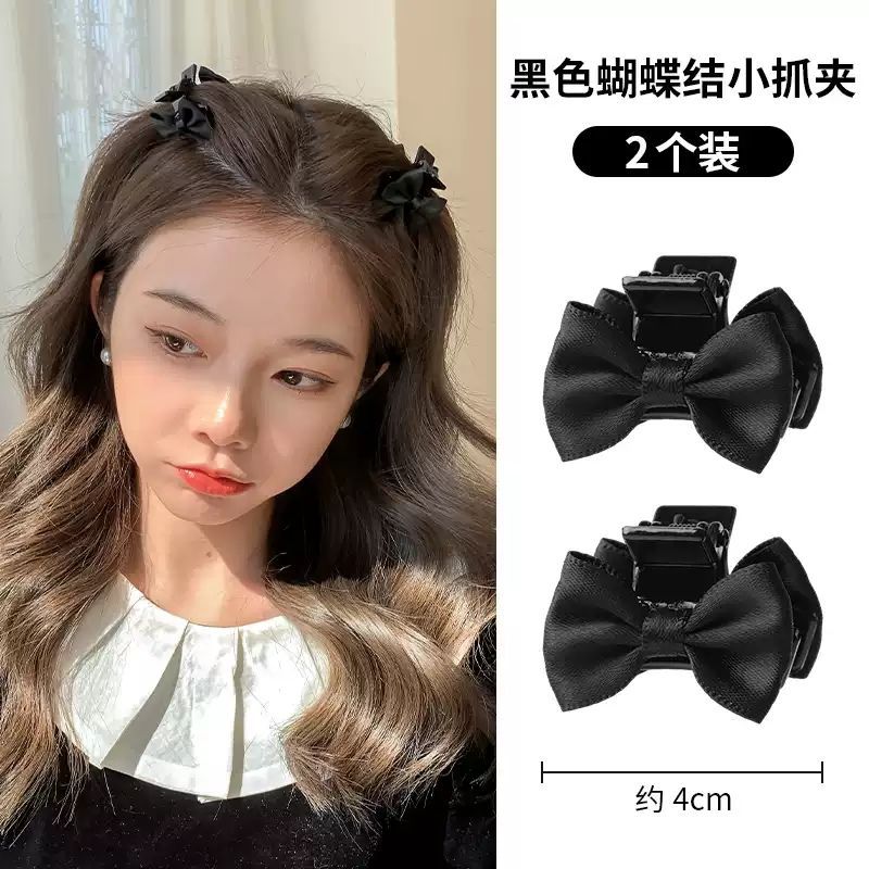 甜美黑色蝴蝶结缎面公主头小抓夹侧边前额刘海碎发夹子头饰发夹女 English | 投诉