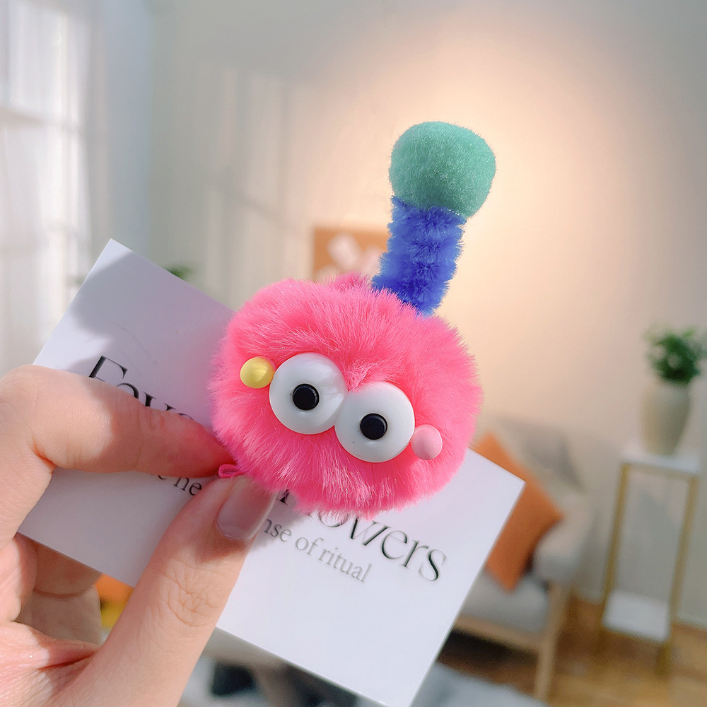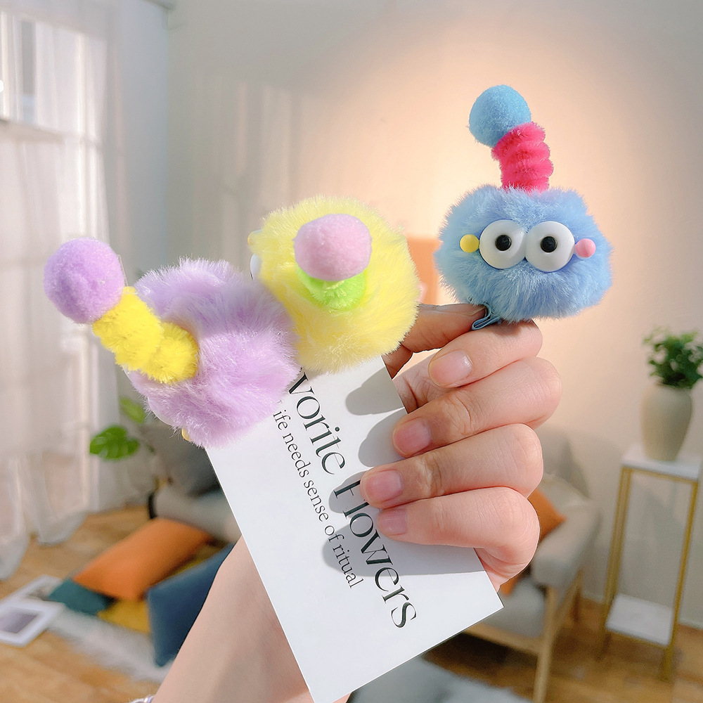 网红新款毛绒彩色卡通毛毛虫发夹儿童搞怪可爱鸭嘴夹丑萌搞怪头饰 English | 投诉