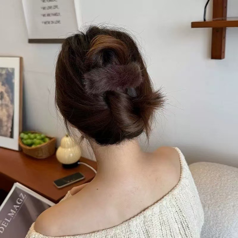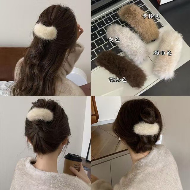 秋冬新款毛毛发夹毛绒扭扭夹后脑勺盘发神器一字夹半扎发抓夹头饰 English | 投诉