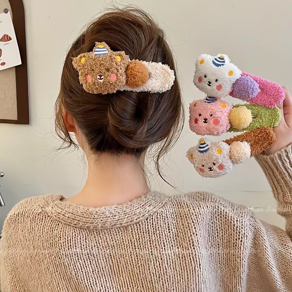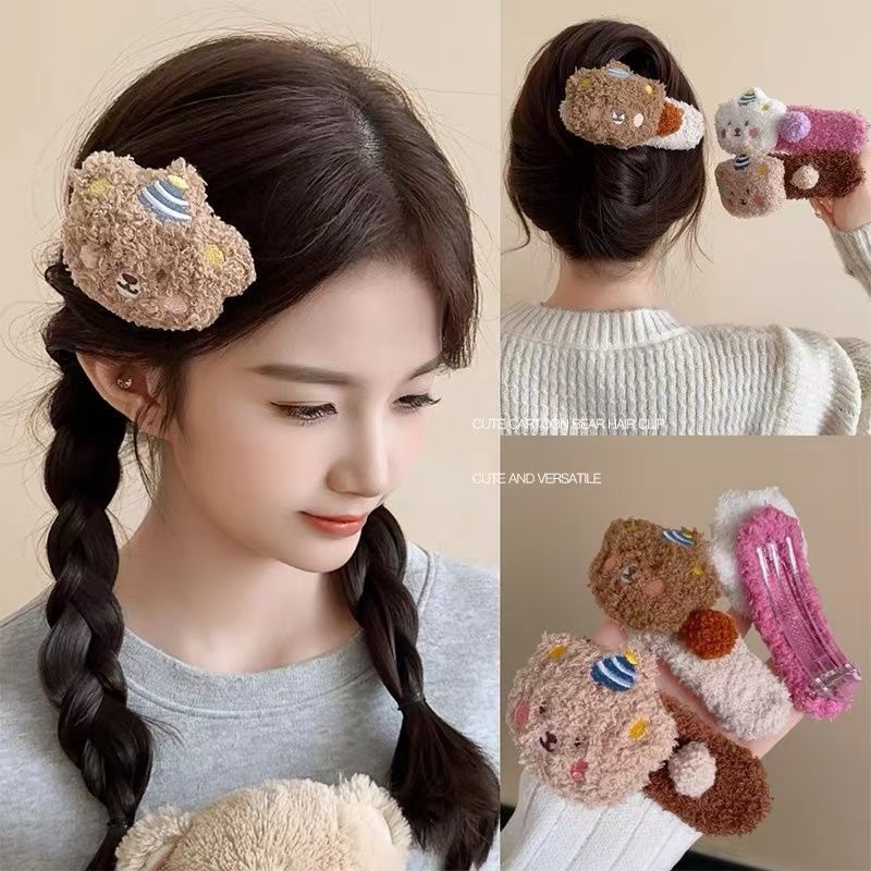 毛绒布丁熊~可爱鸭嘴夹大号发夹头饰2025新款后脑勺少女毛绒抓夹 English | 投诉