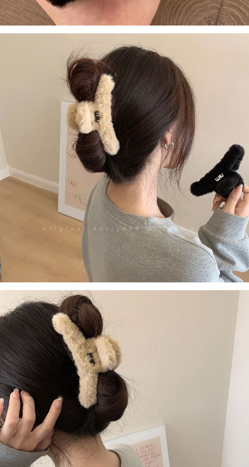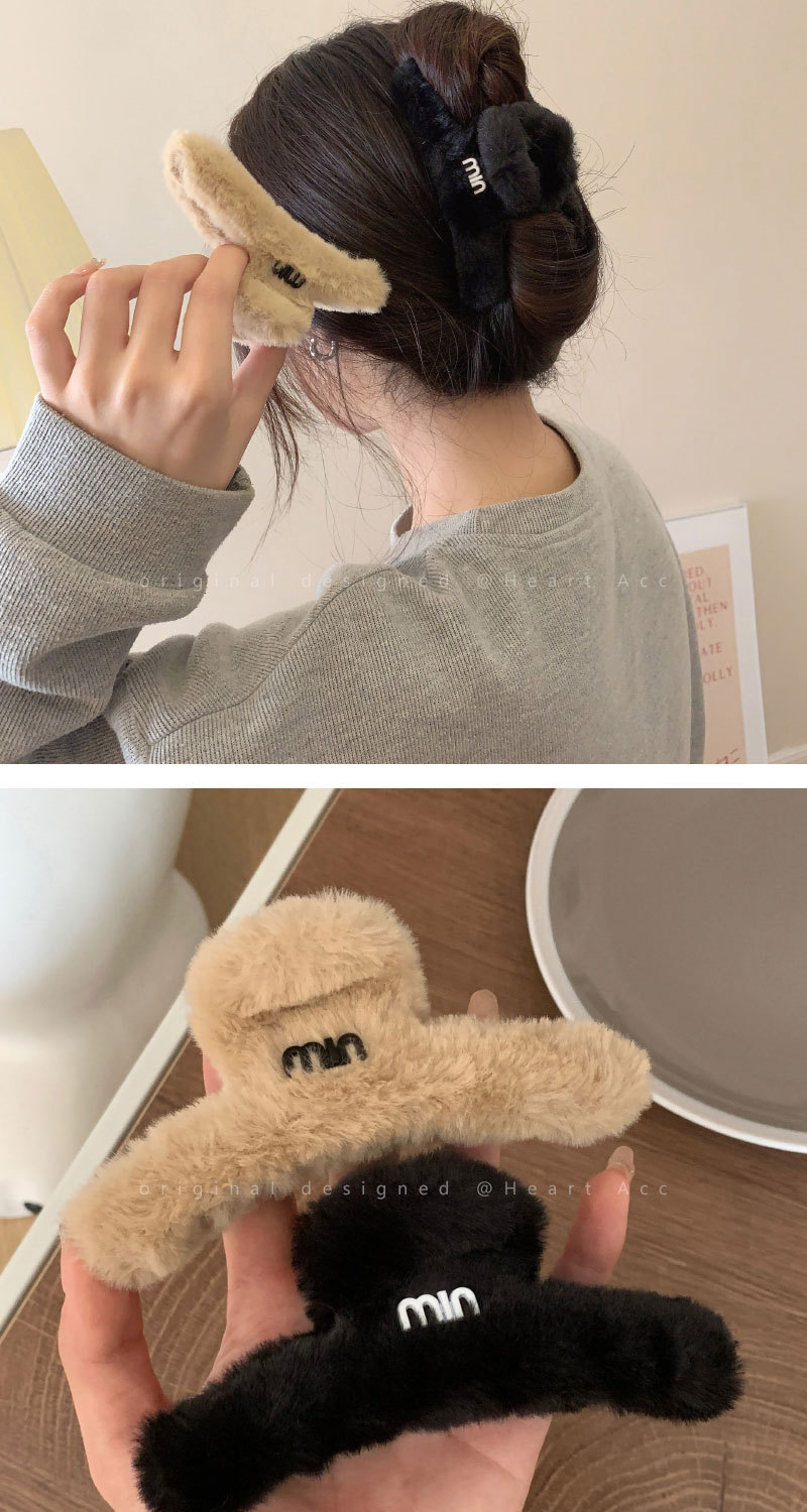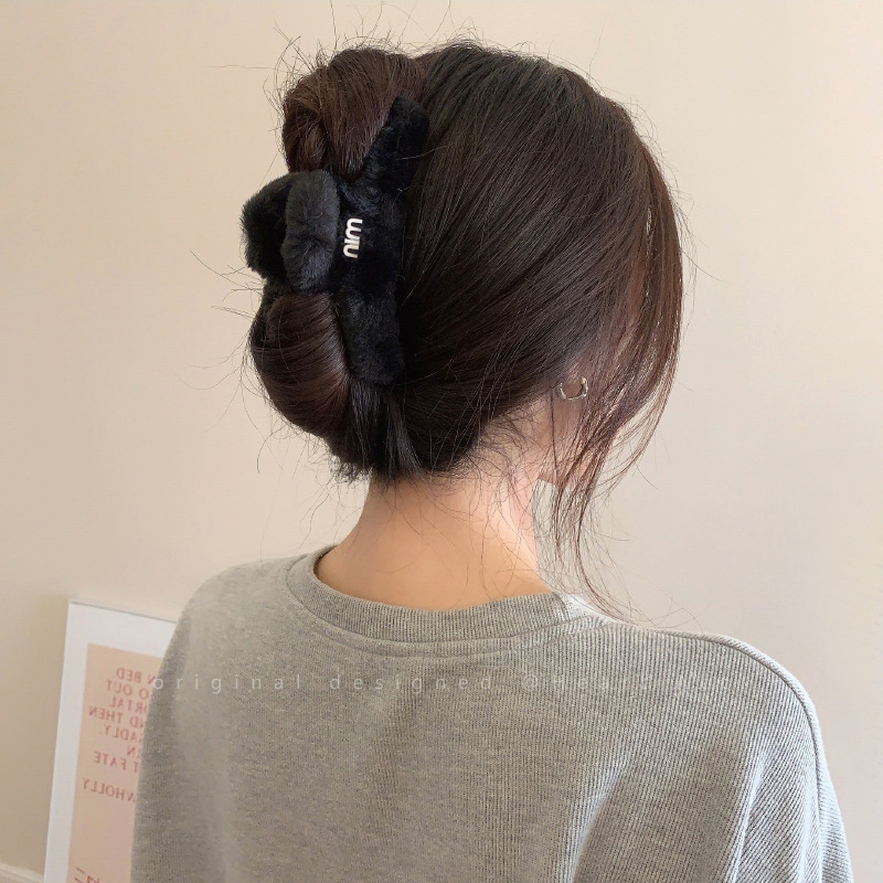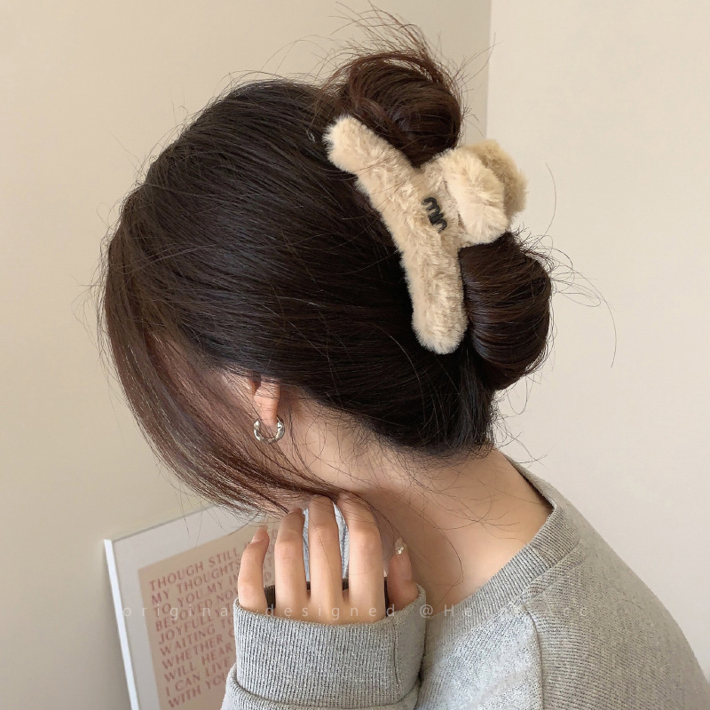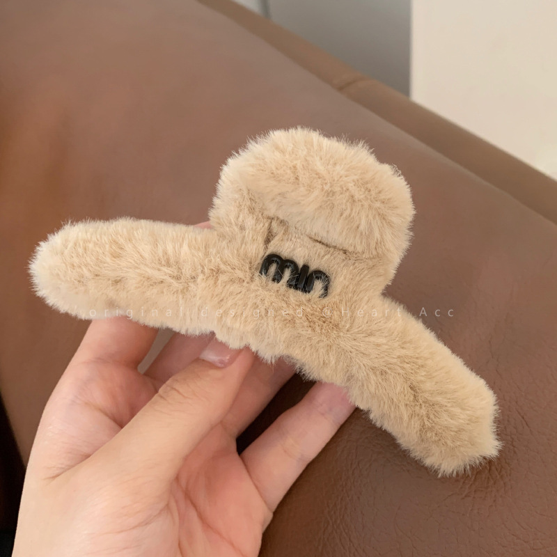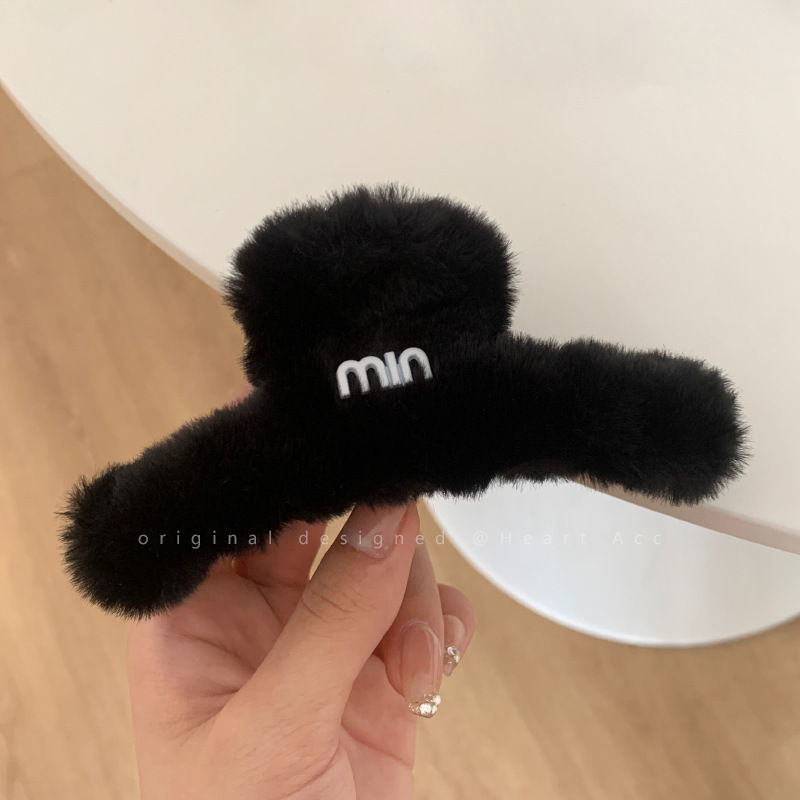 高级感字母毛绒大号抓夹女秋冬后脑勺复古发夹韩版气质鲨鱼夹发饰 English | 投诉