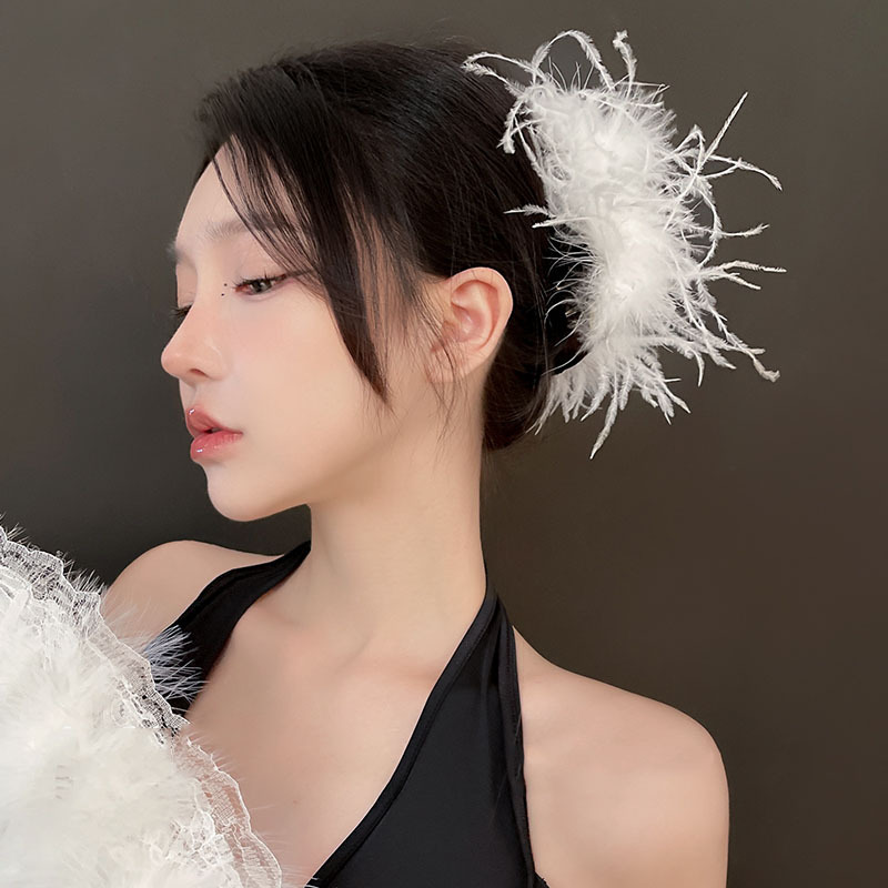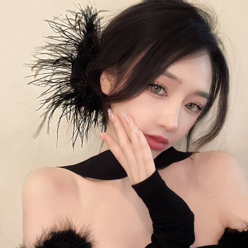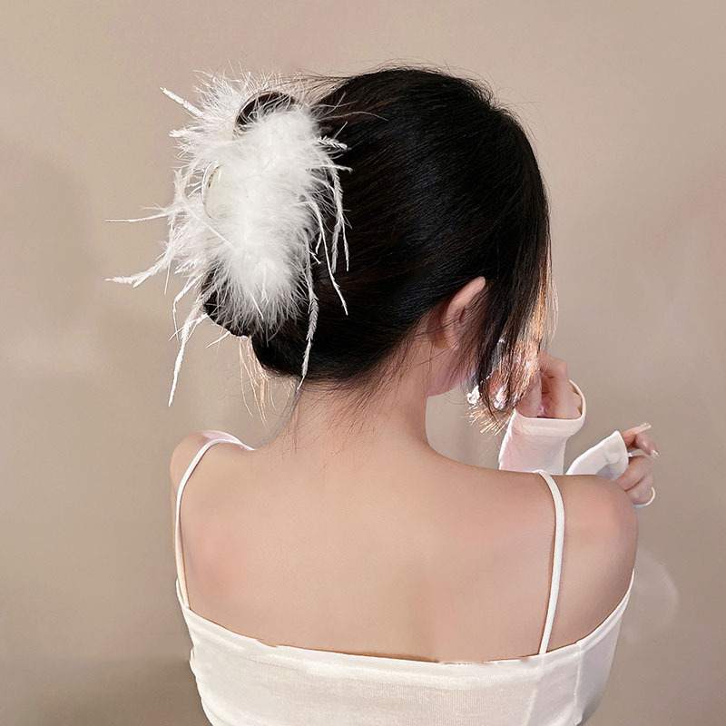 纯欲~羽毛抓夹ins风鸵鸟发夹后脑勺超仙发饰高级感夹子毛毛鲨鱼夹 English | 投诉
