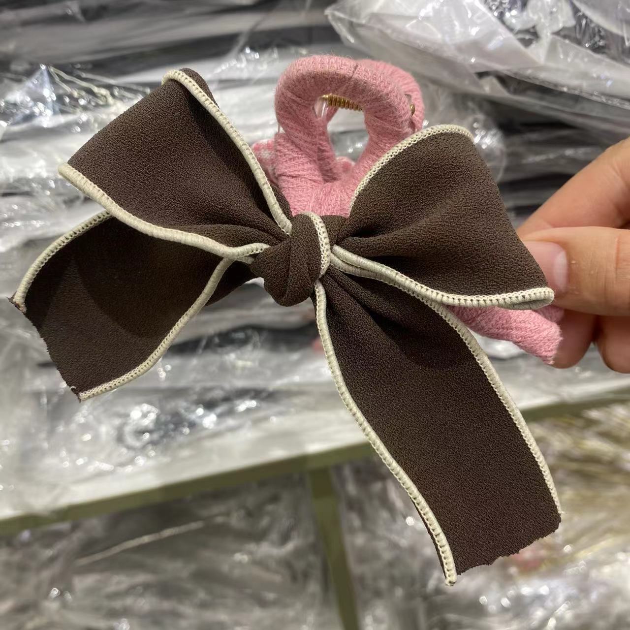 材质: 混合材质 发夹分类: 抓夹 流行元素: 蝴蝶结 风格: 韩版韩式 处理工艺: 手工 产地: 金华 颜色: 卡其,绿色,粉色,蓝色 是否跨境出口专供货源: 是 上市年份/季节: 2023年秋季 风格分类: 清新甜美 主要销售地区: 非洲,欧洲,南美,北美,东北亚,中东 适用人群: 女式 流行元素分类: 形状/图案 重量: 0.489 kg/个
