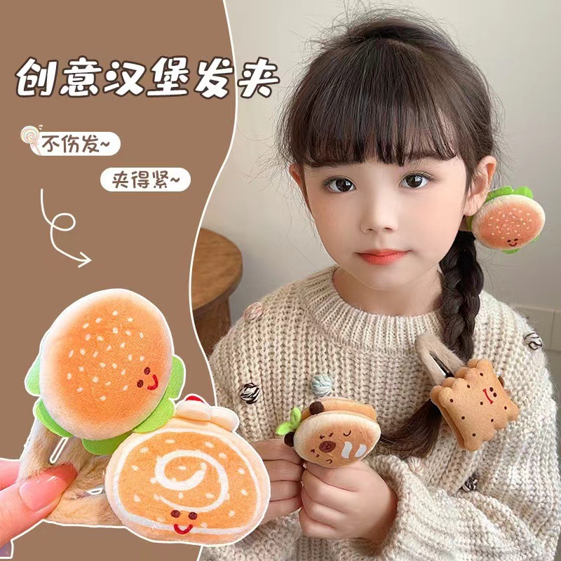 仿真汉堡毛绒发夹女生好玩搞怪食物食玩边夹瑞士卷发卡儿童头饰女 English | 投诉