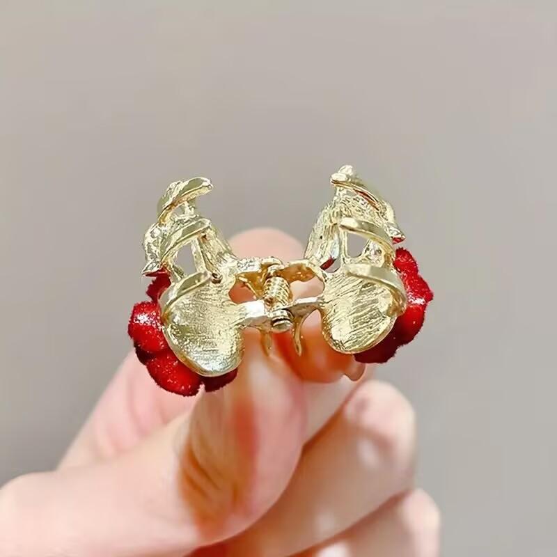 发卡闪钻红色玫瑰花抓夹小号秋冬发饰气质感公主头刘海夹圣诞新年 English | 投诉