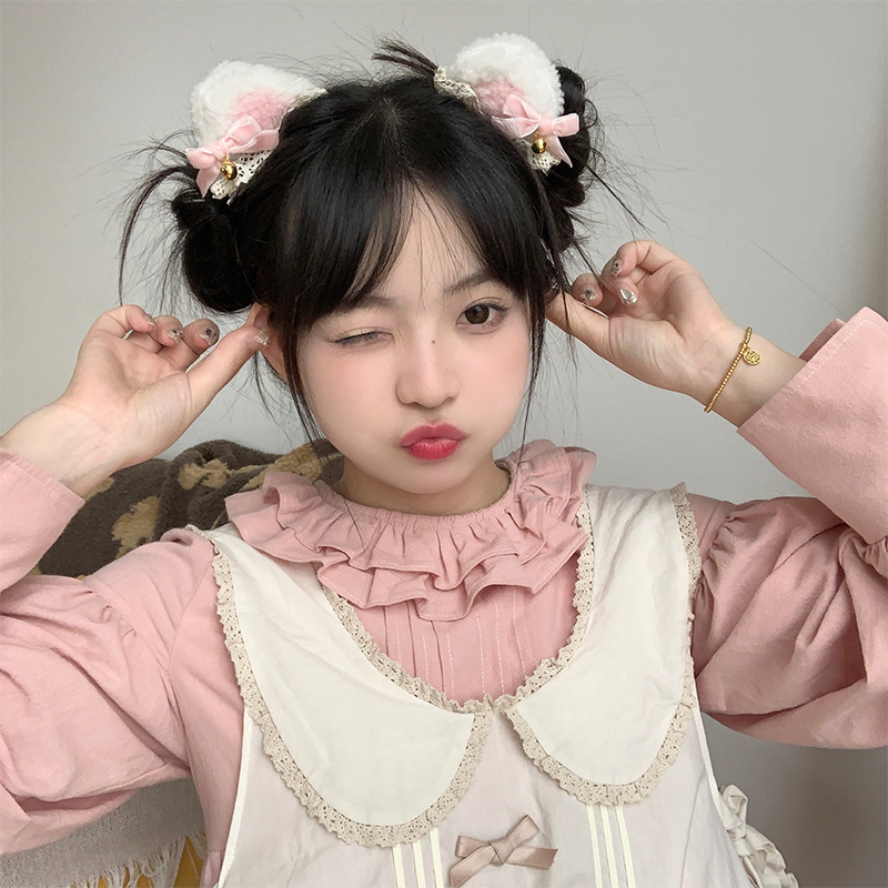 可爱猫耳朵发夹蝴蝶结发卡儿童毛绒绒耳朵发饰卡通对夹女鸭嘴夹 English | 投诉