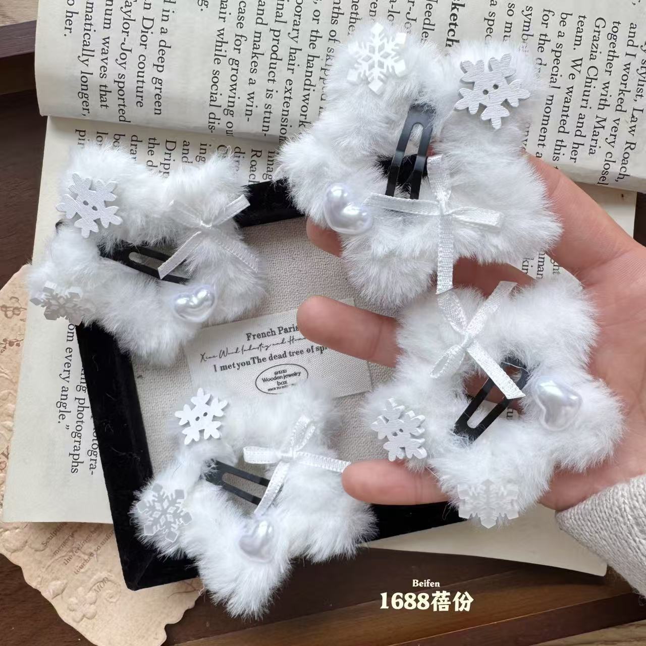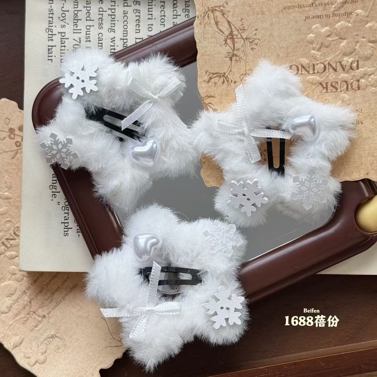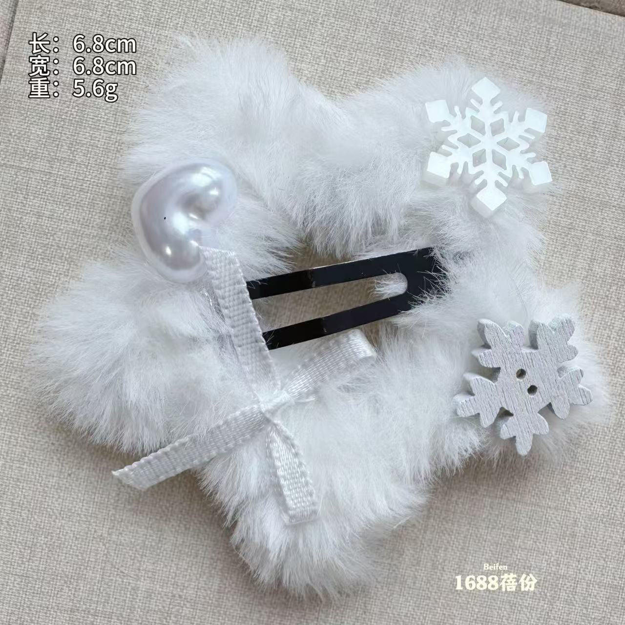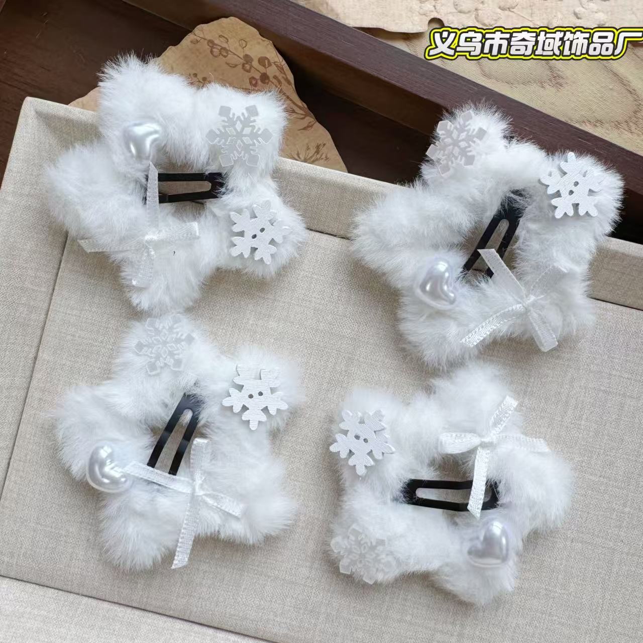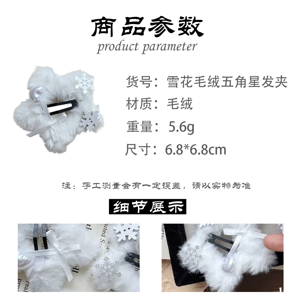 冬日氛围感纯白雪花五角星星毛绒绒BB夹可爱甜美侧边边夹刘海夹女 English | 投诉