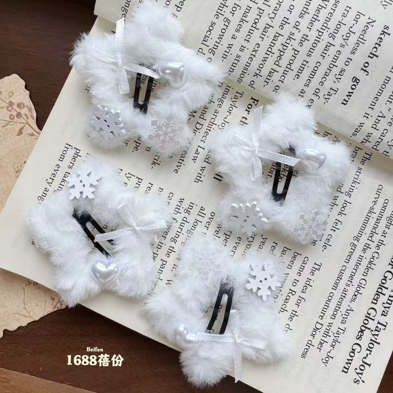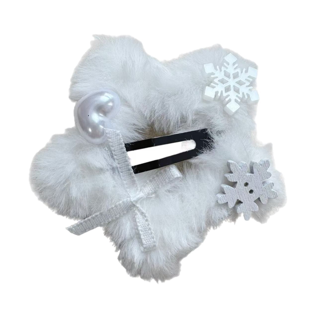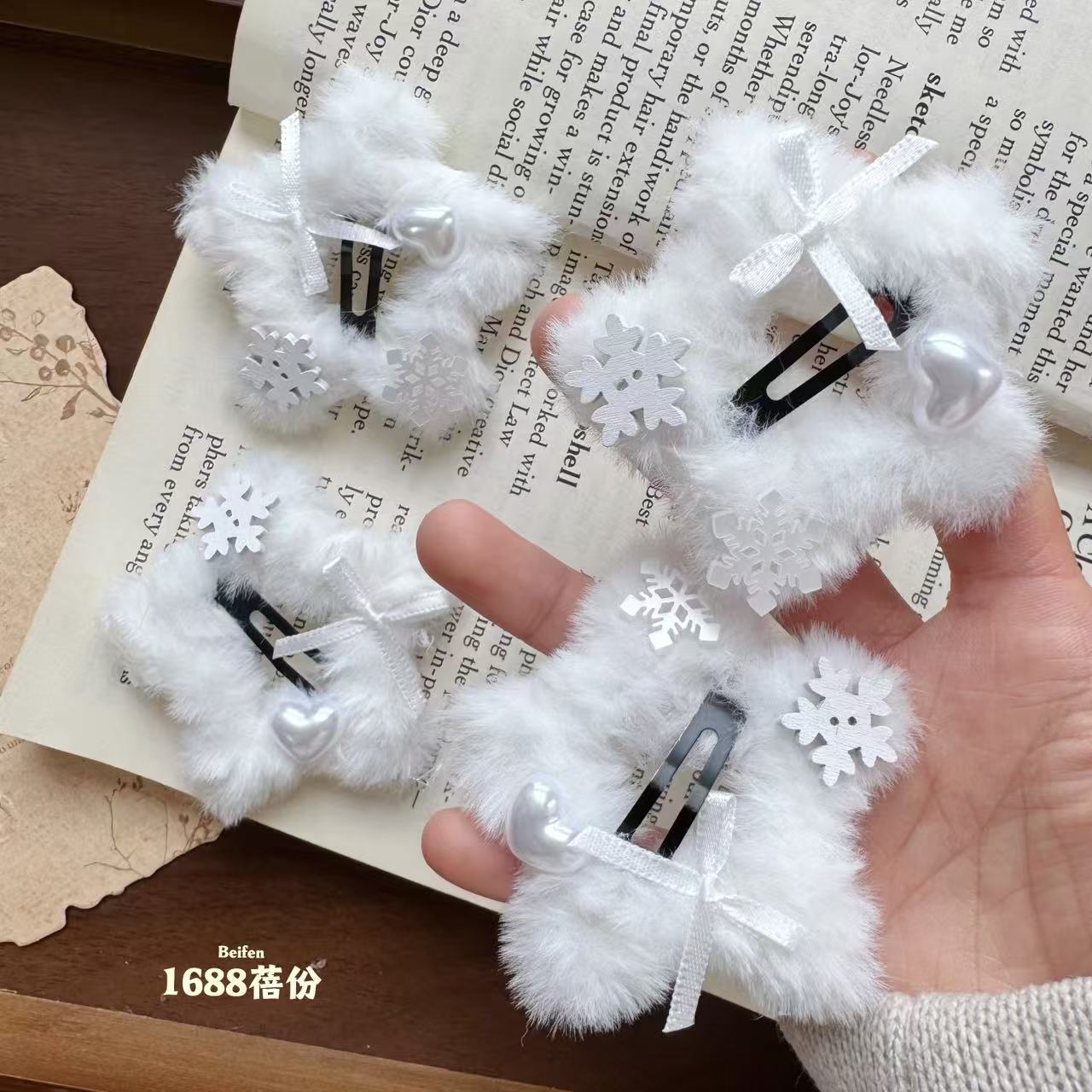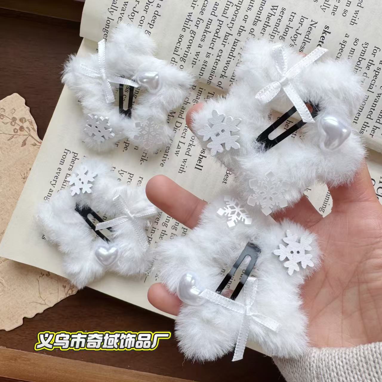 冬日氛围感纯白雪花五角星星毛绒绒BB夹可爱甜美侧边边夹刘海夹女 English | 投诉