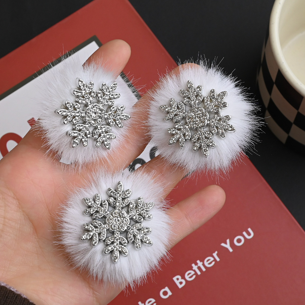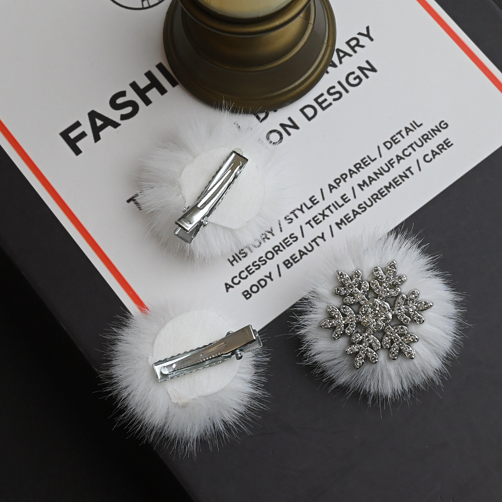 超仙毛绒雪花小发夹女前额碎发刘海边夹圣诞节日装扮气质发卡头饰 English | 投诉