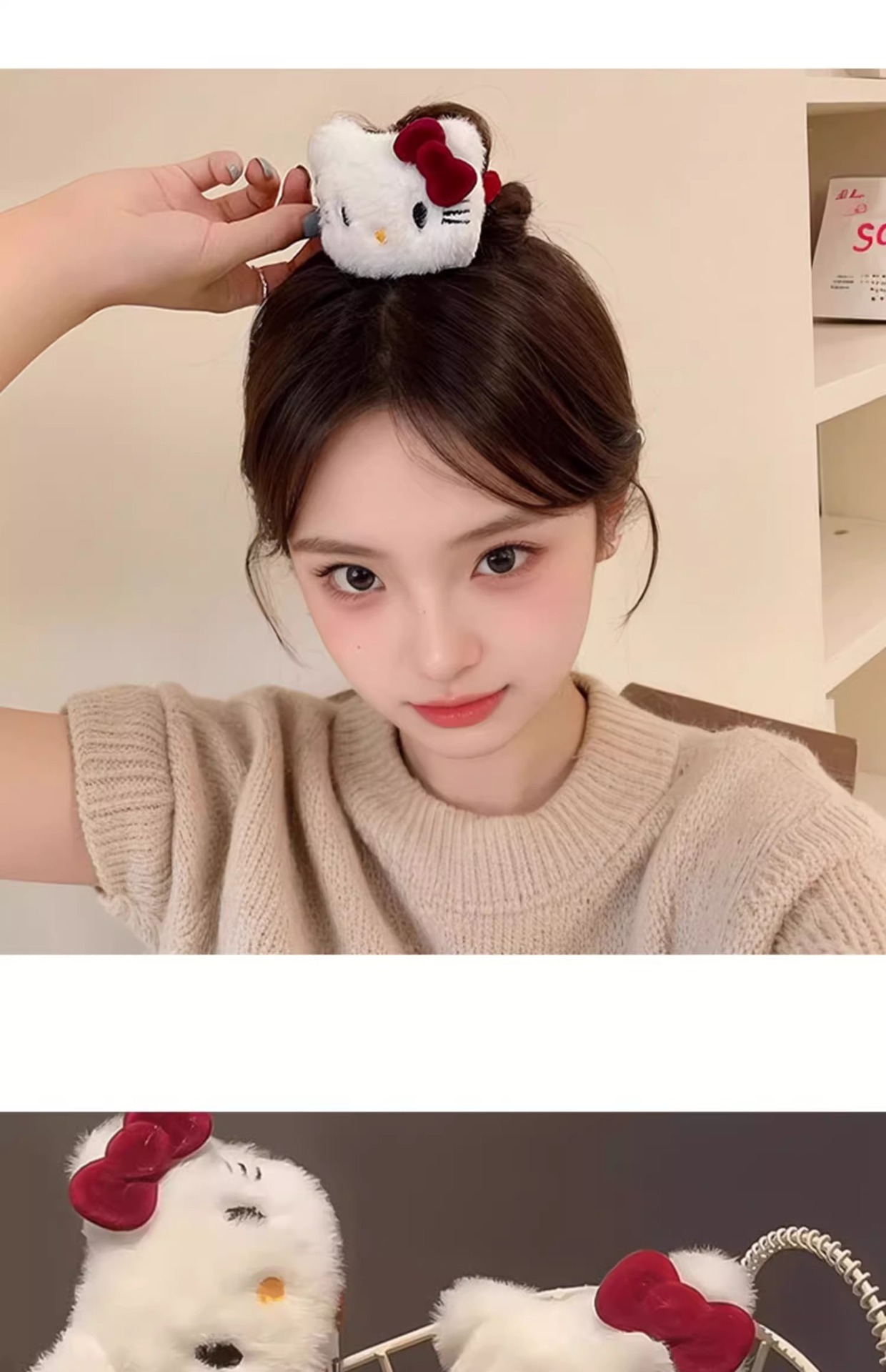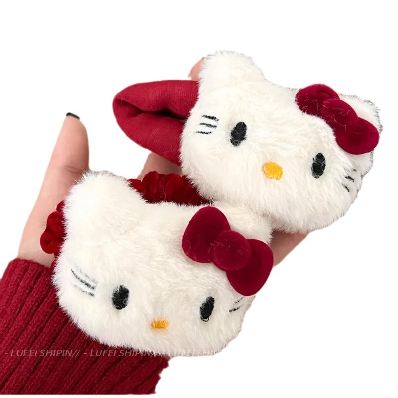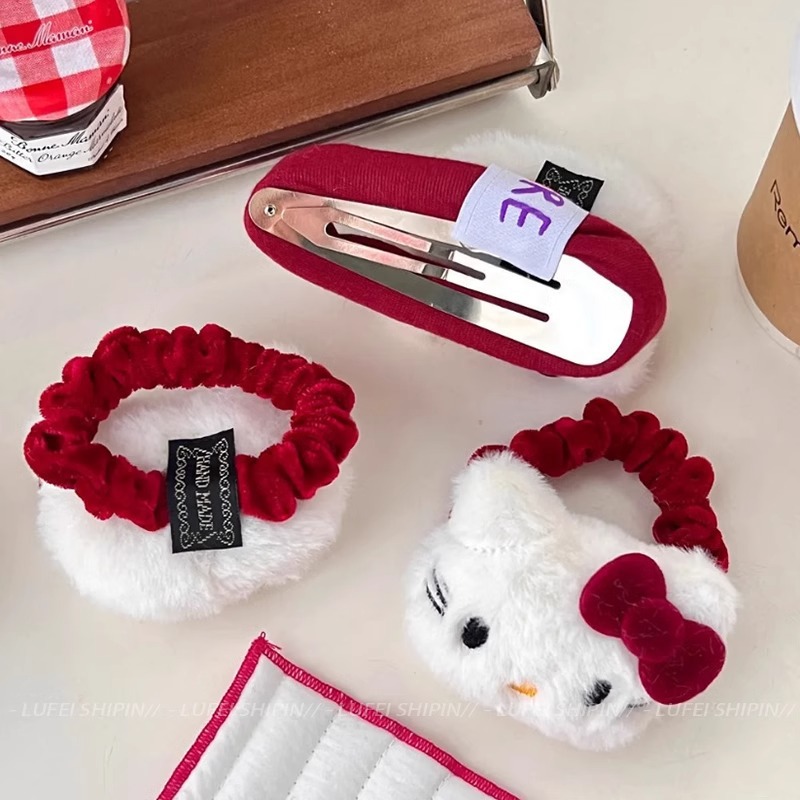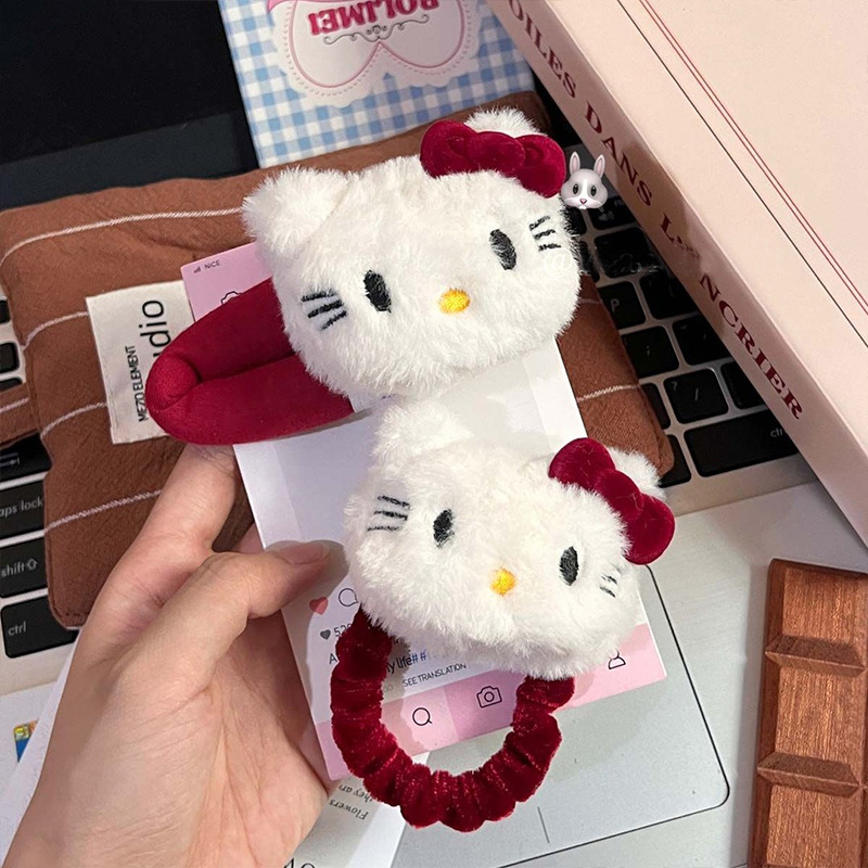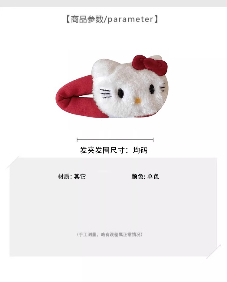 新款红色Kt猫发圈卡通毛绒少女刘海侧边夹可爱扎发头绳发夹发饰 English | 投诉