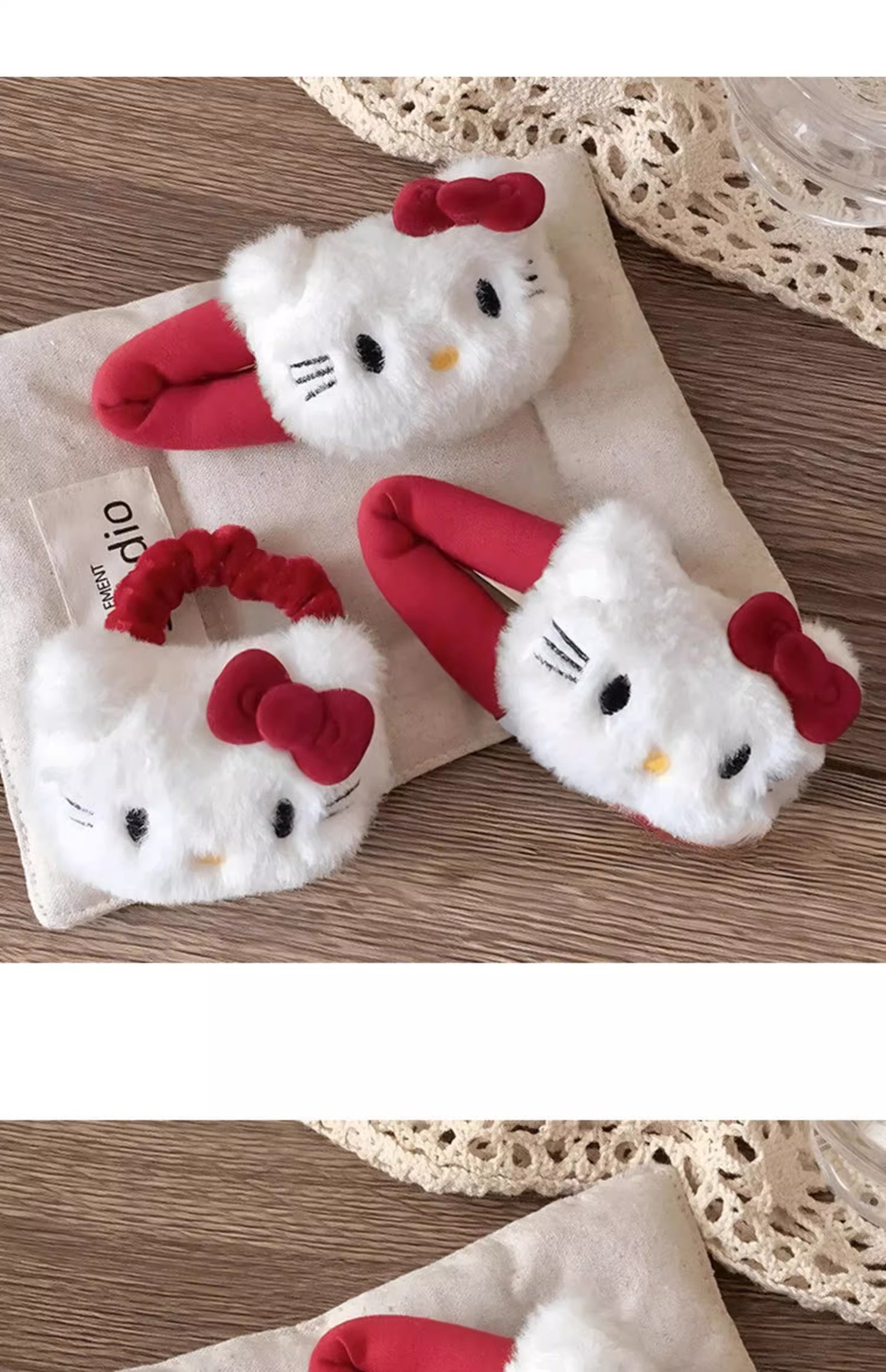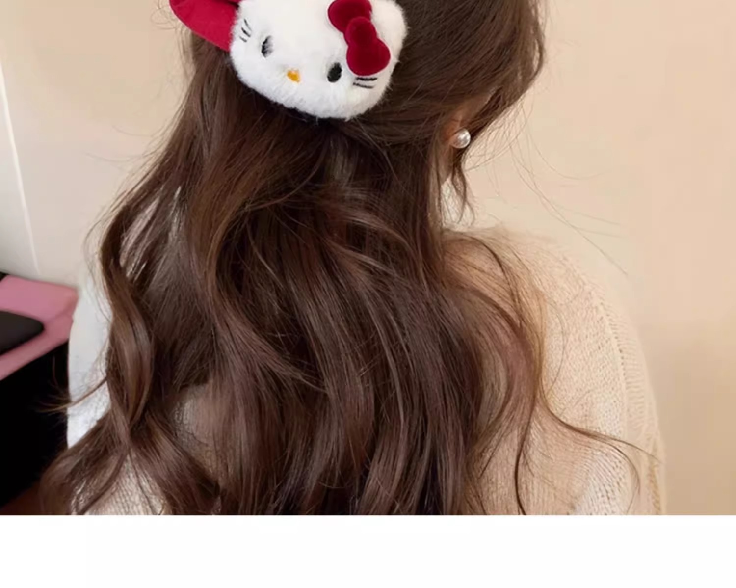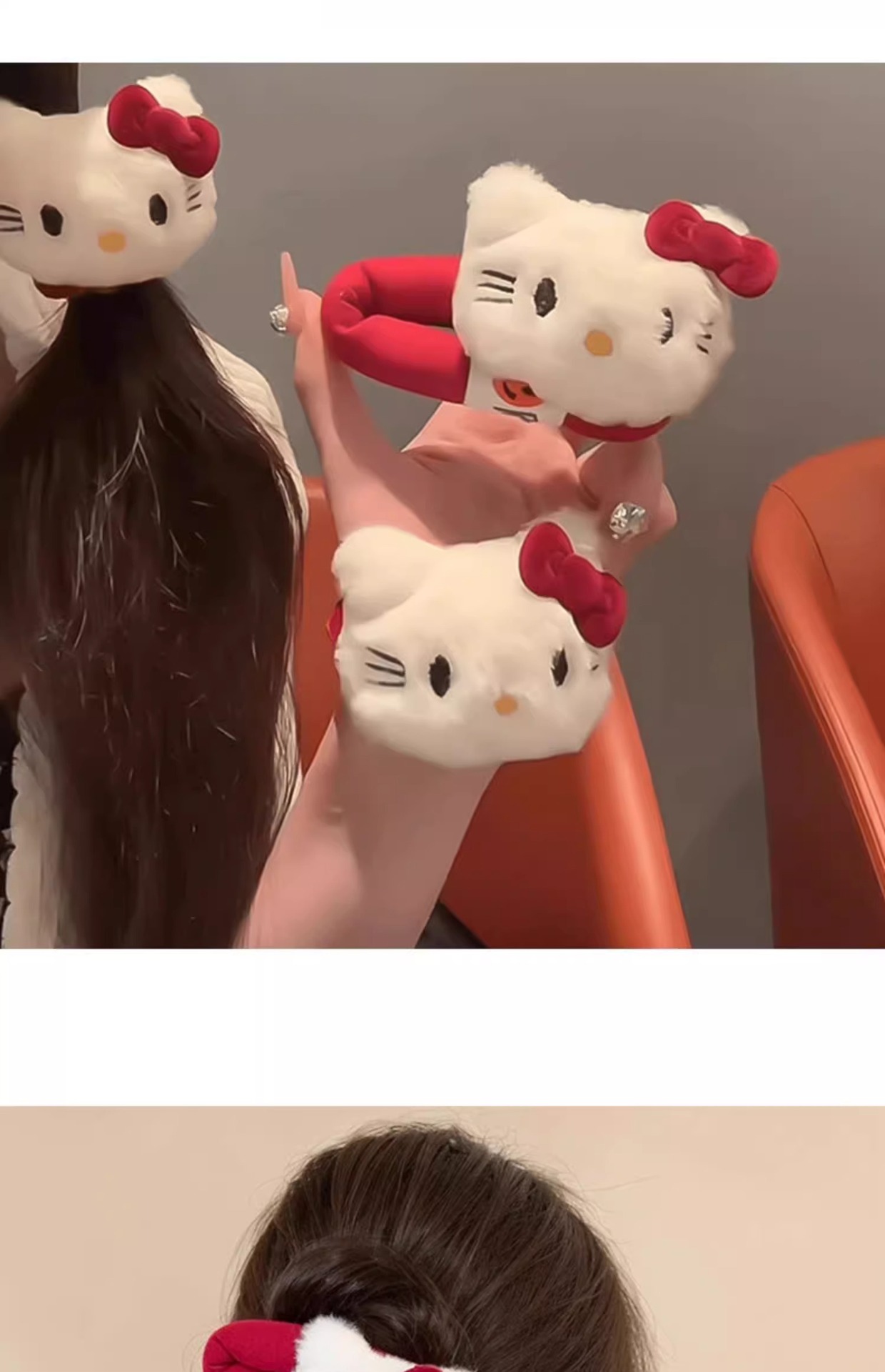 新款红色Kt猫发圈卡通毛绒少女刘海侧边夹可爱扎发头绳发夹发饰 English | 投诉