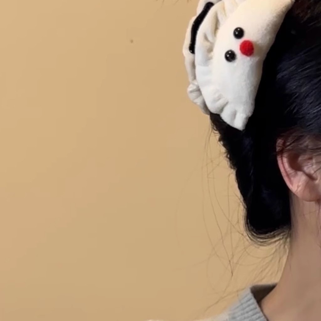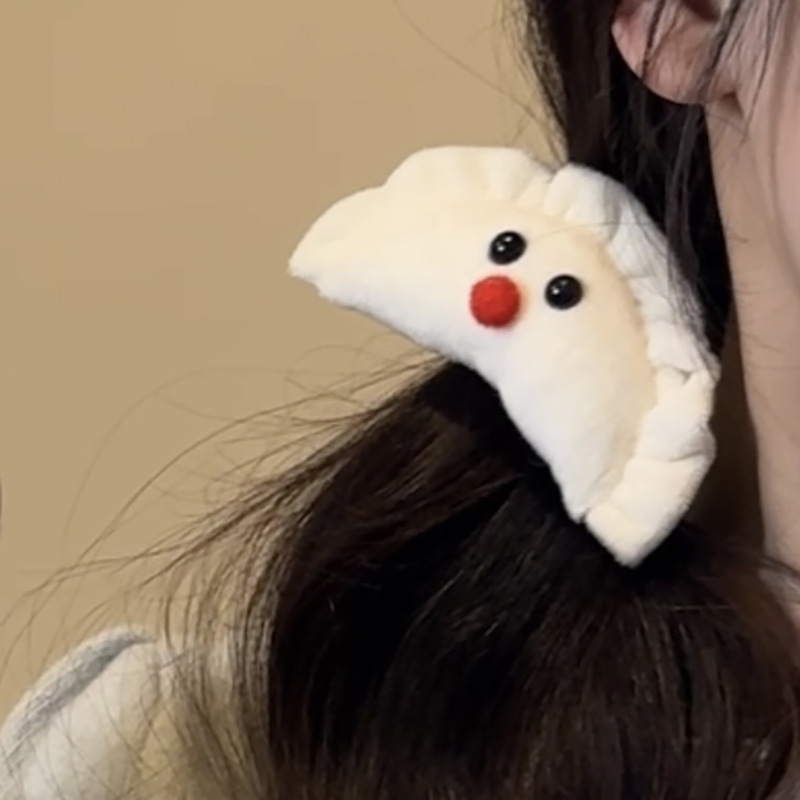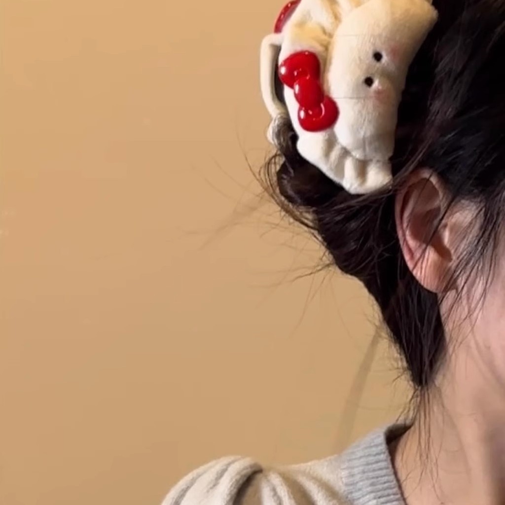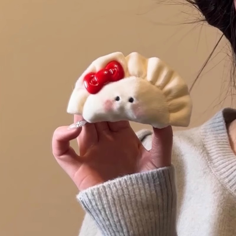 可爱毛绒腮红蝴蝶结饺子发夹女刘海侧边夹春节发抓后脑勺盘发夹 English | 投诉