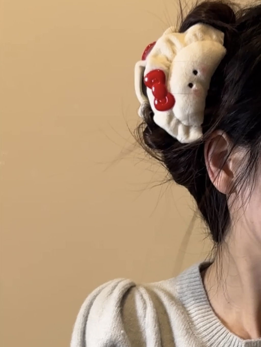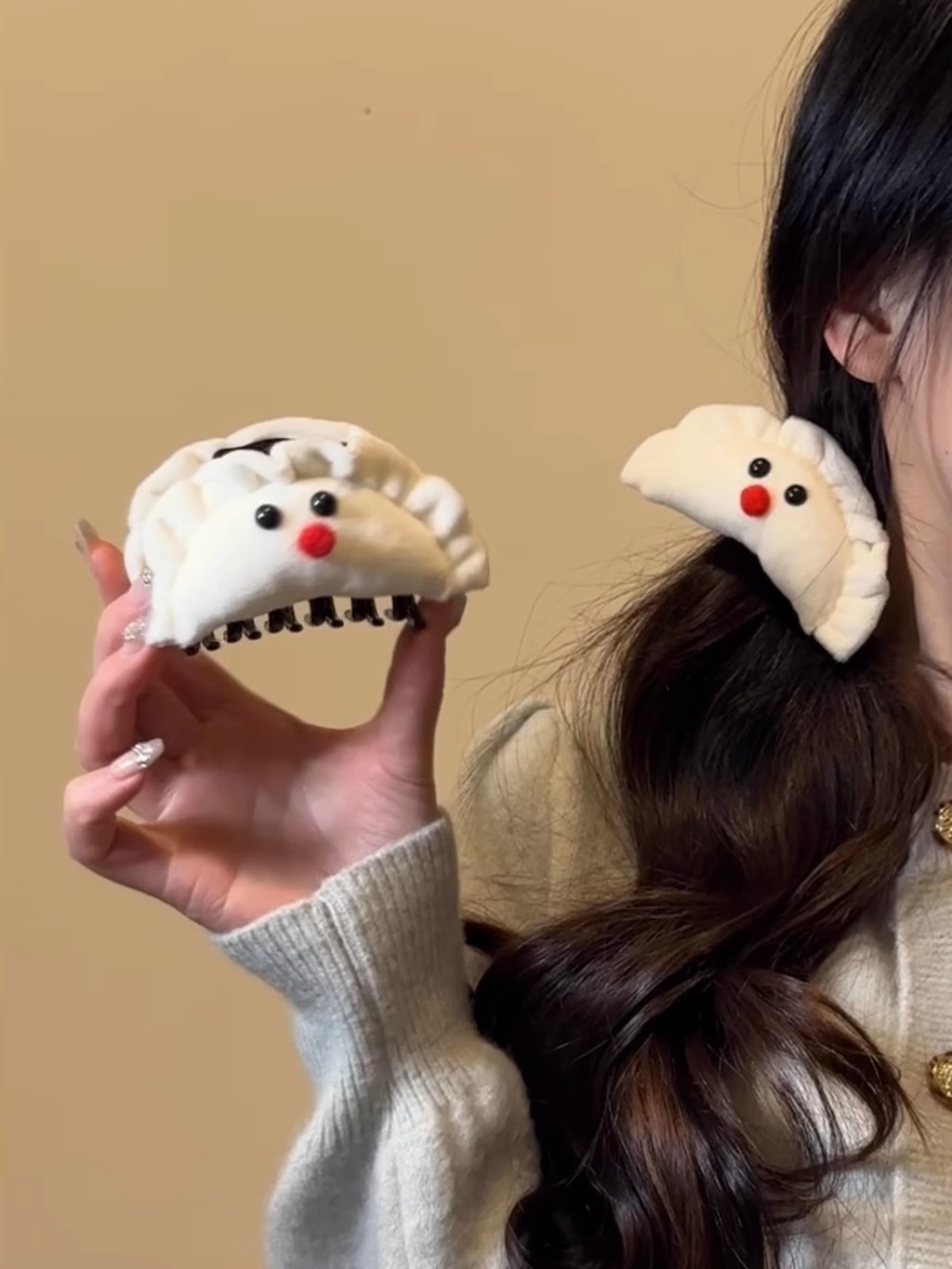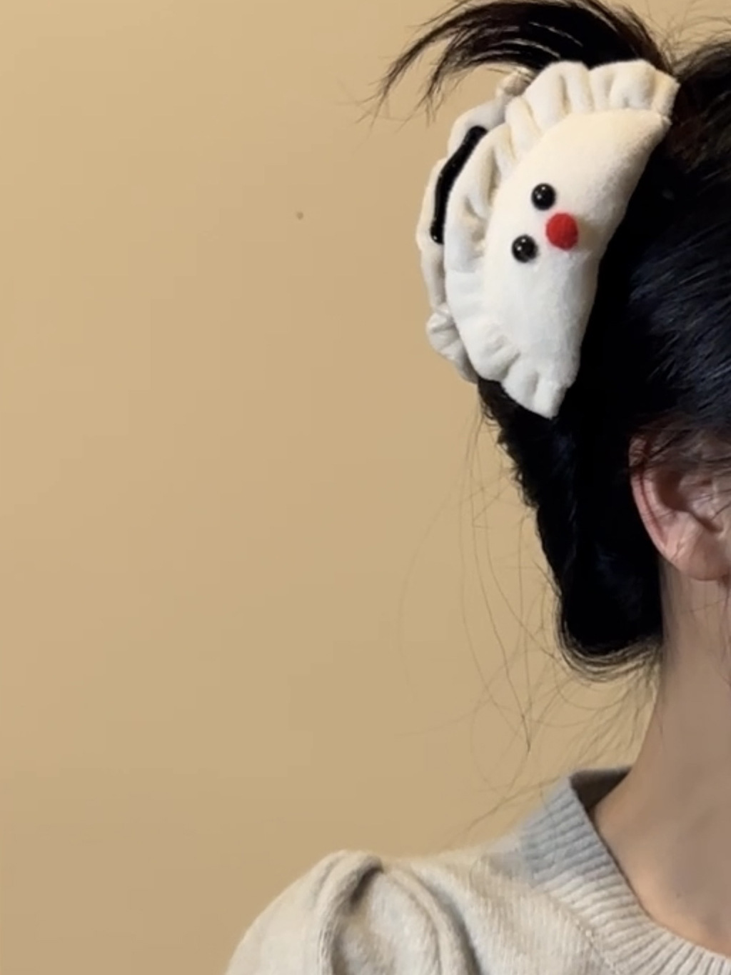 可爱毛绒腮红蝴蝶结饺子发夹女刘海侧边夹春节发抓后脑勺盘发夹 English | 投诉