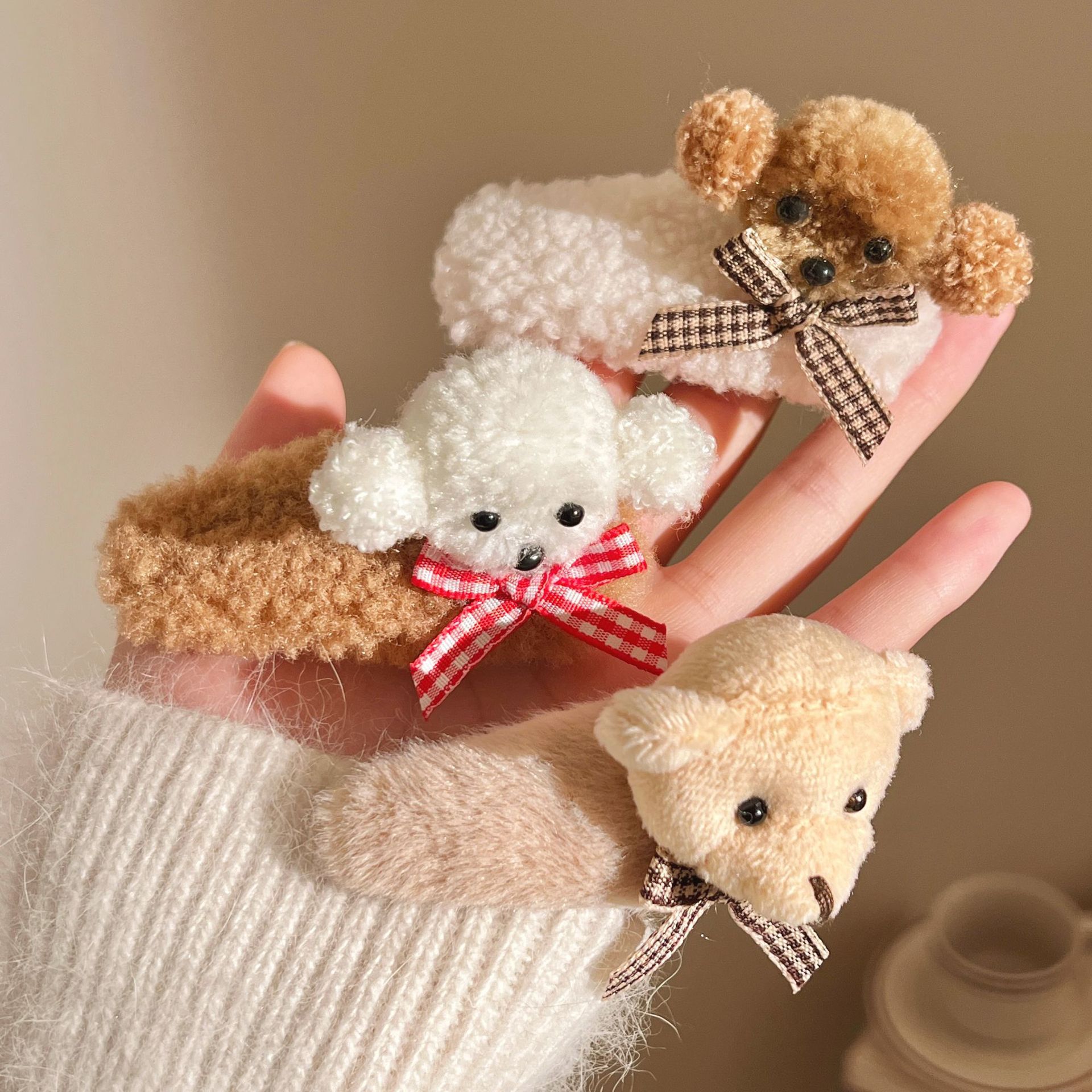 可爱毛绒泰迪小狗掰掰夹边夹蝴蝶结小熊发夹发饰头饰精品店批发 English | 投诉
