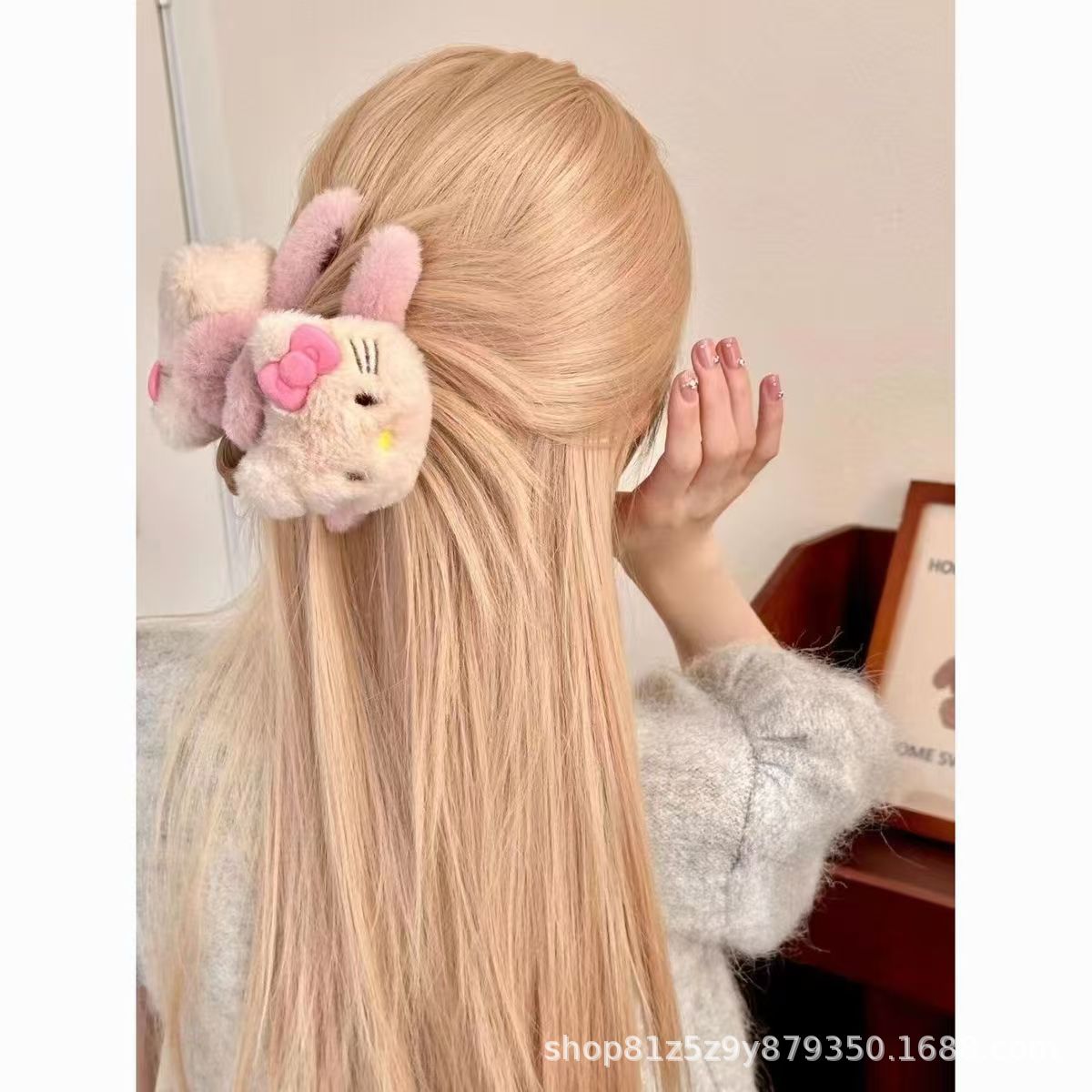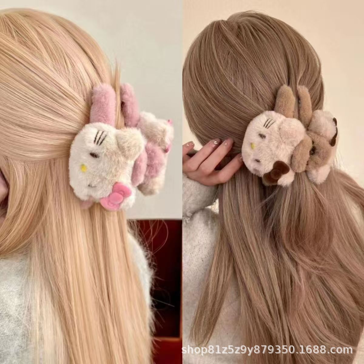 可爱毛绒双面kt猫抓夹大号盘发鲨鱼夹秋冬爆款甜美卡通新品发饰 English | 投诉