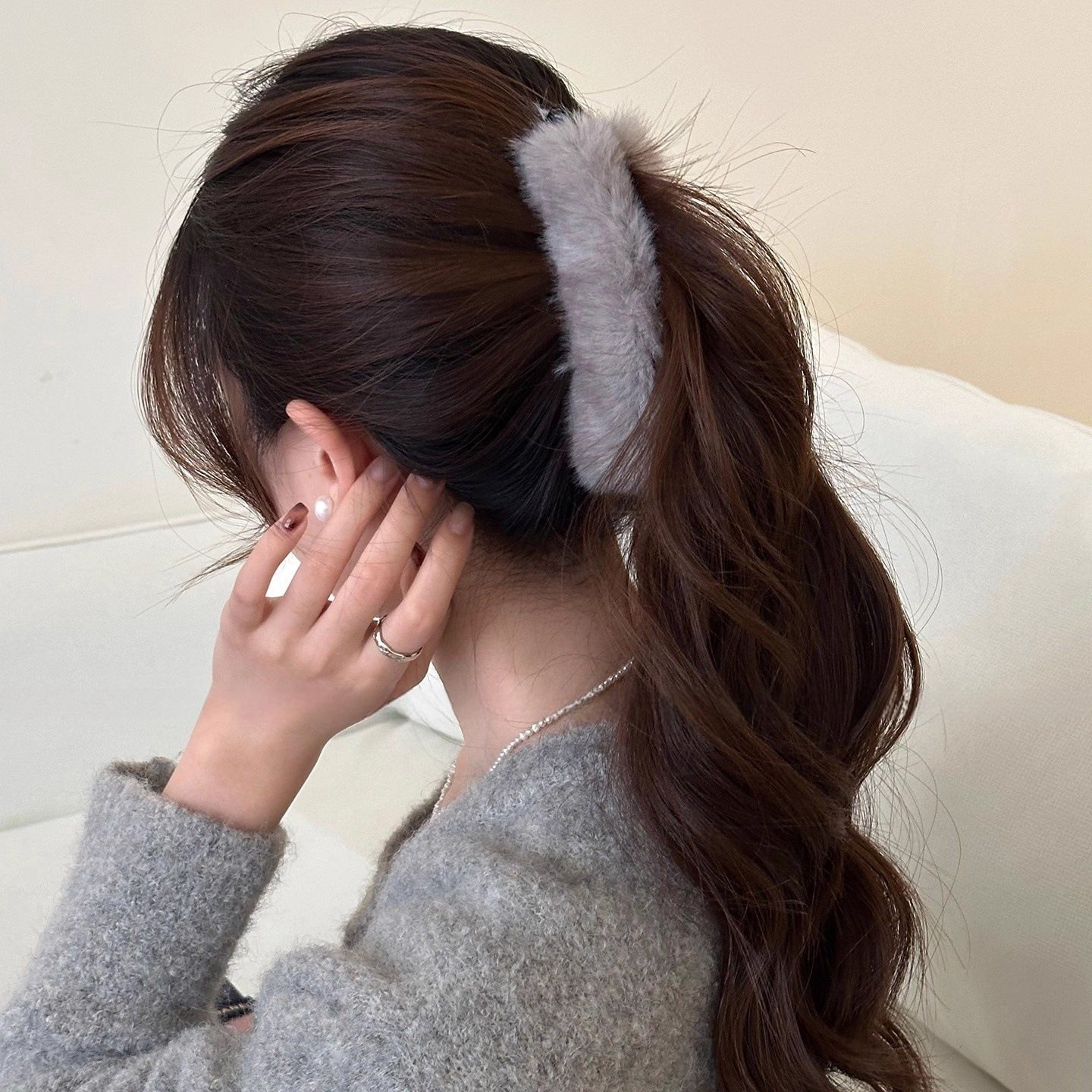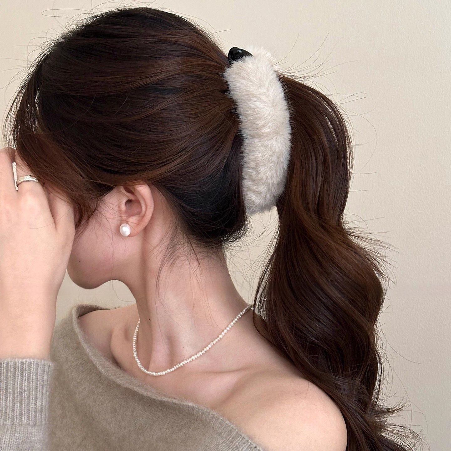 秋冬纯色毛绒香蕉夹女款高级感后脑勺盘发夹子高马尾竖夹发夹发饰 English | 投诉