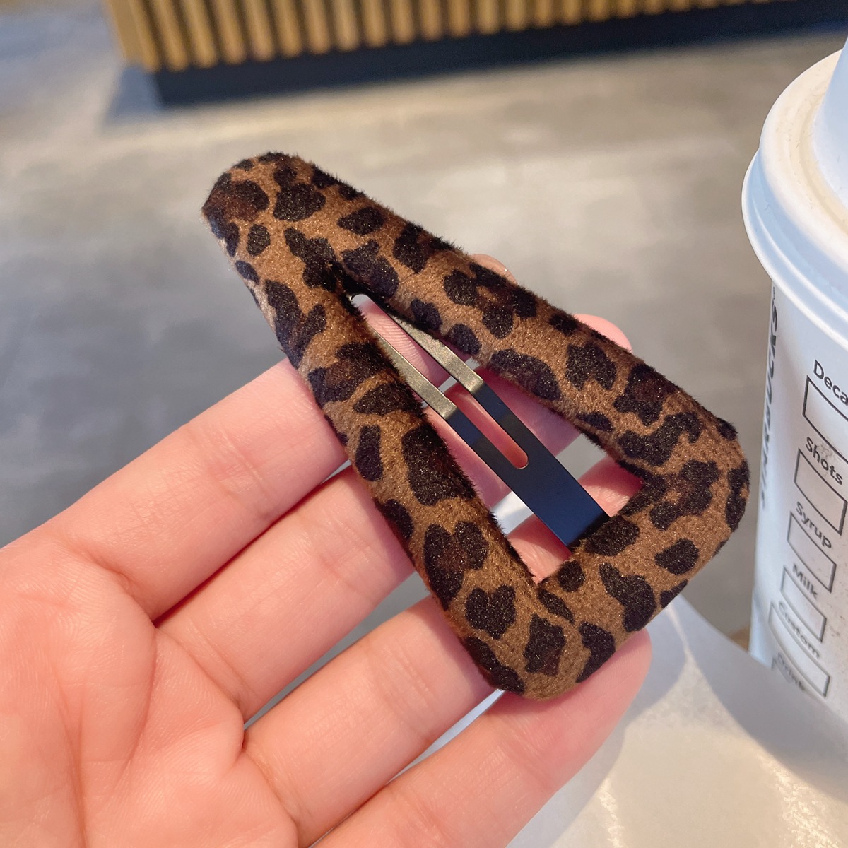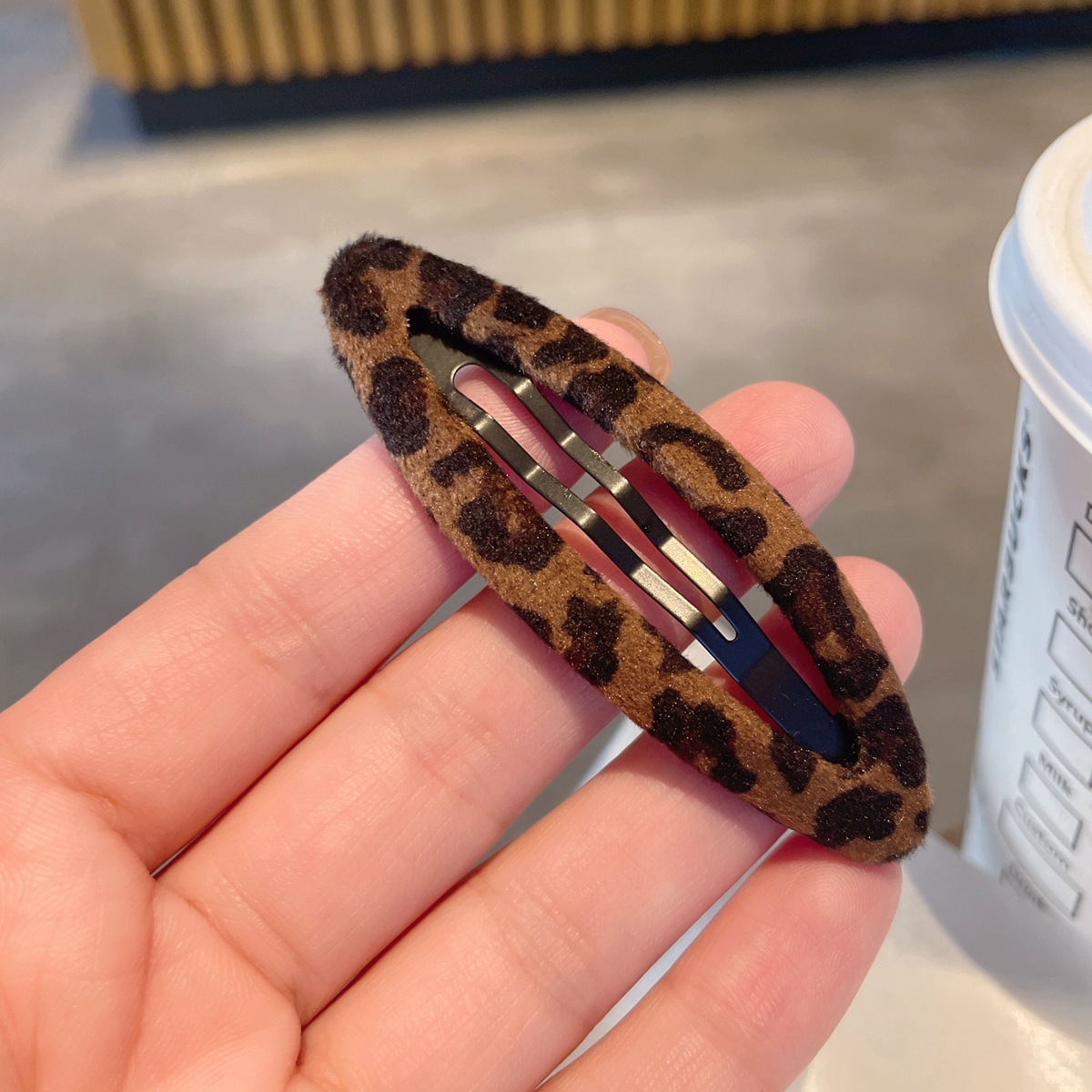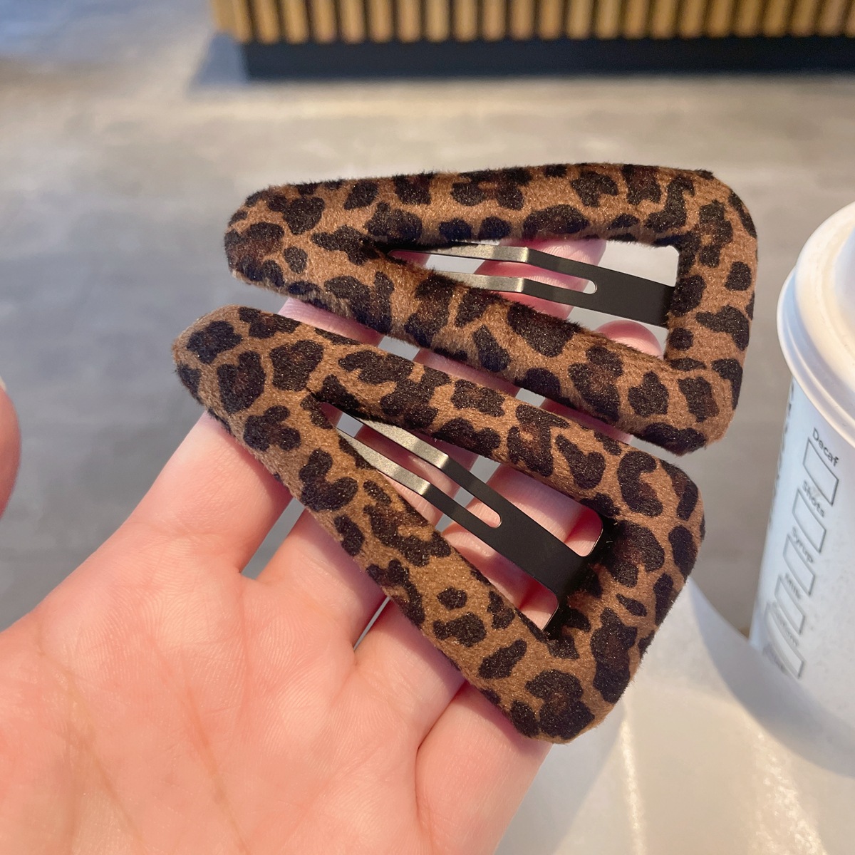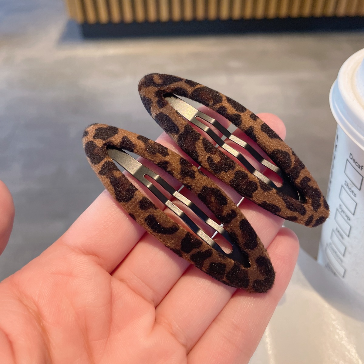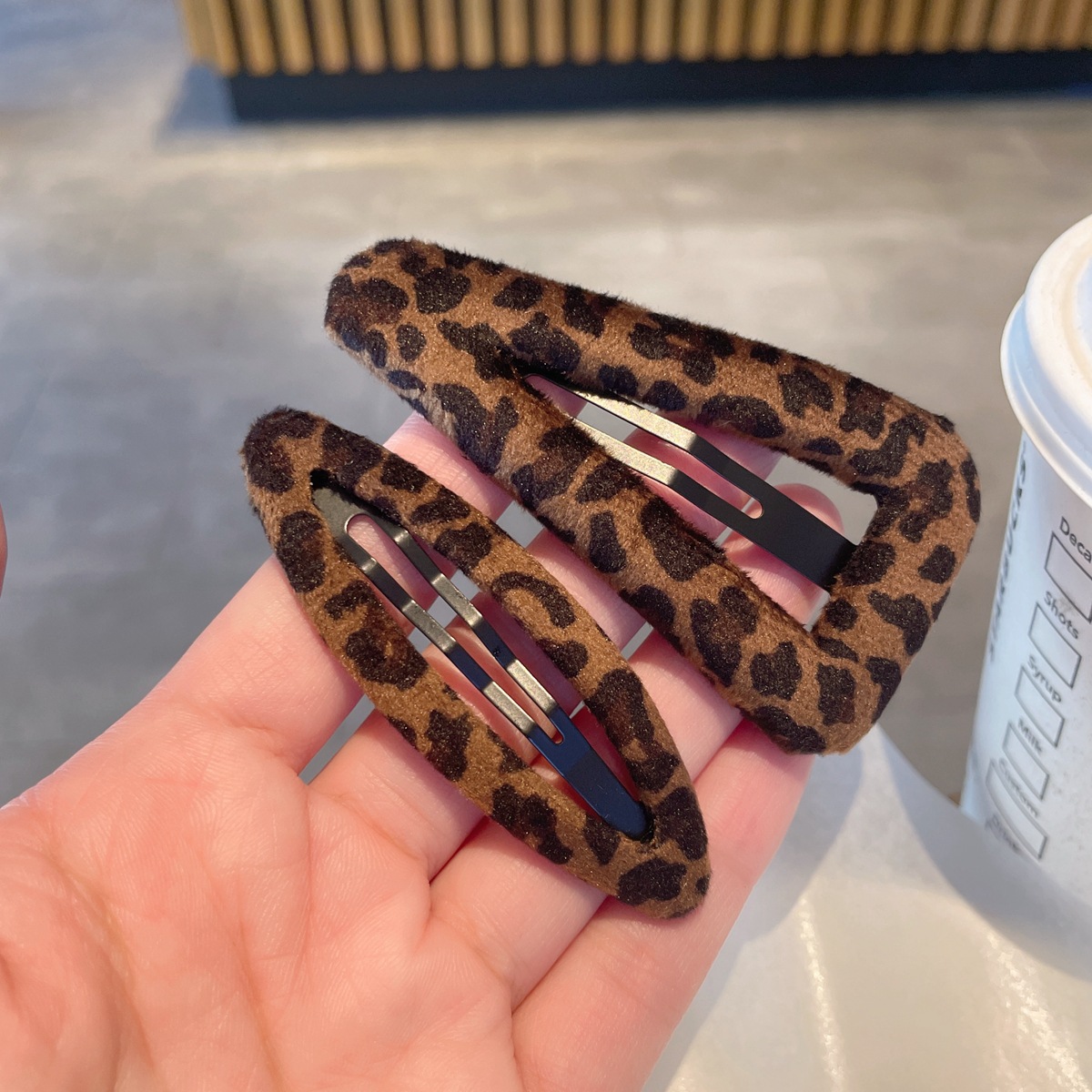 韩系时髦麂皮绒质感豹纹发夹~ins风百搭纹理镂空水滴bb夹布艺发卡 English | 投诉