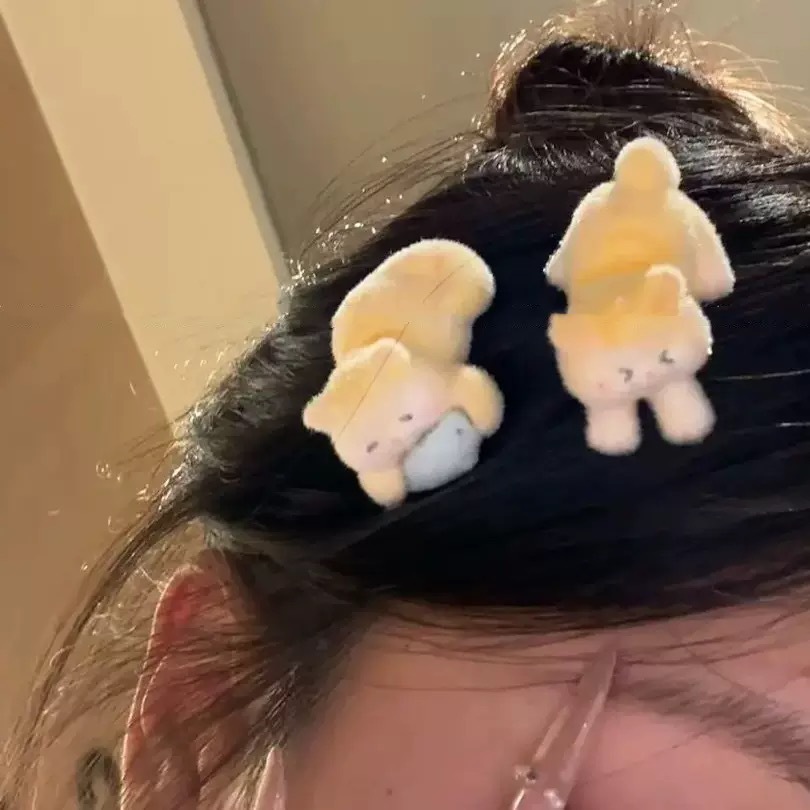 可爱毛绒小猫吃鱼发夹女刘海侧边夹鸭嘴夹2026年新款秋冬头饰发卡 English | 投诉