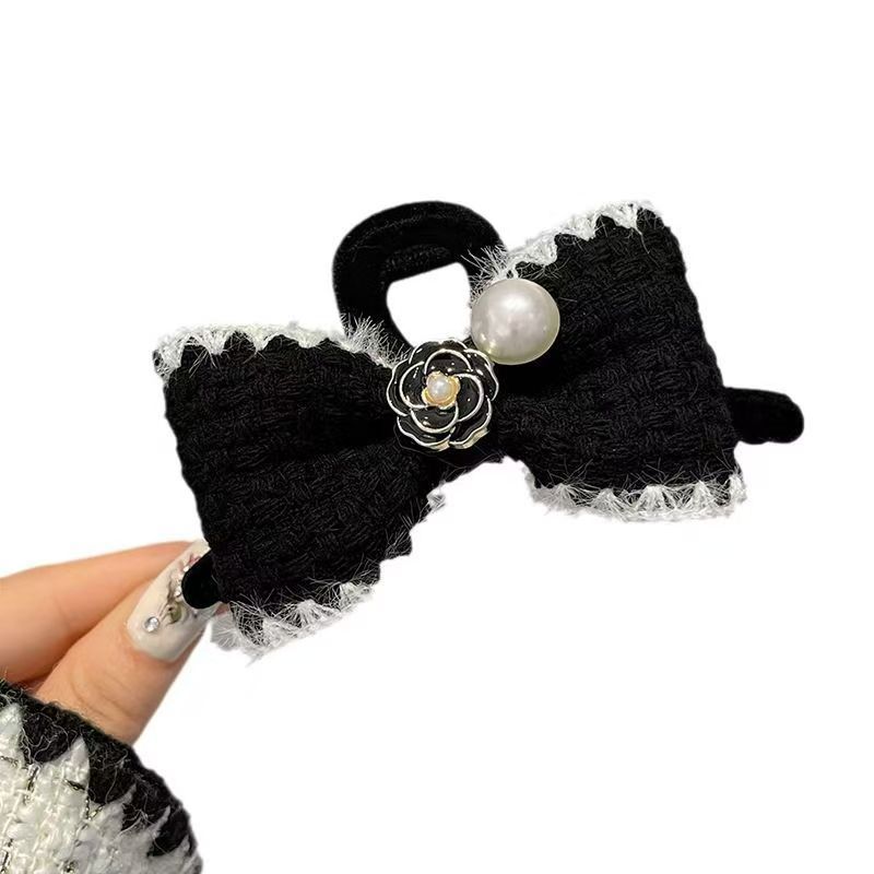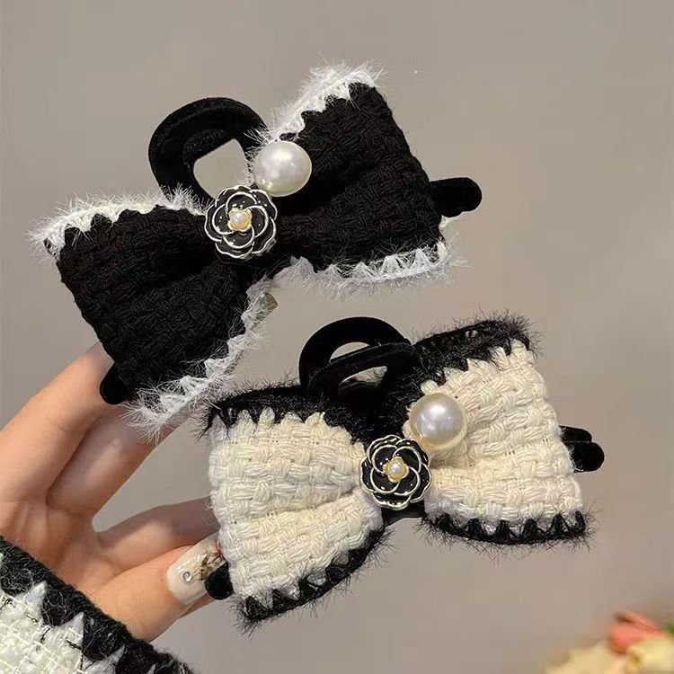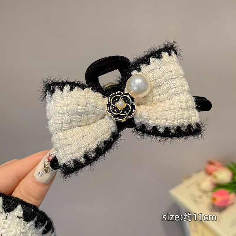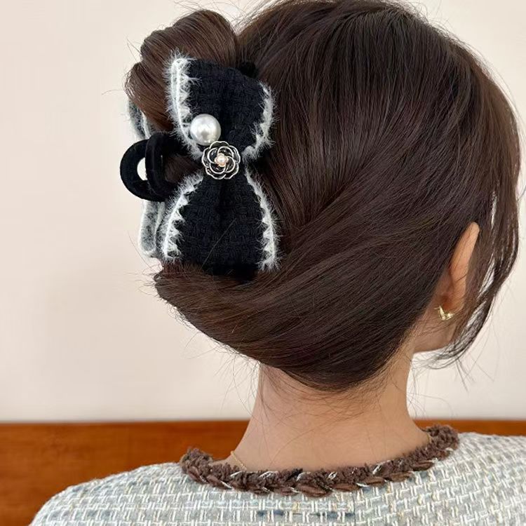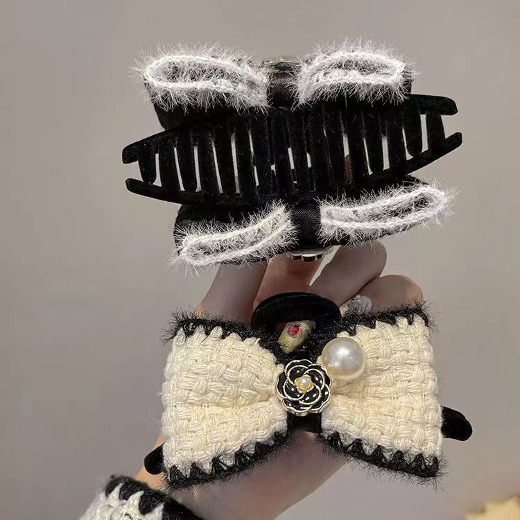 小香风蝴蝶结发夹女秋冬后脑勺盘发抓夹毛绒鲨鱼夹子复古气质发饰 English | 投诉