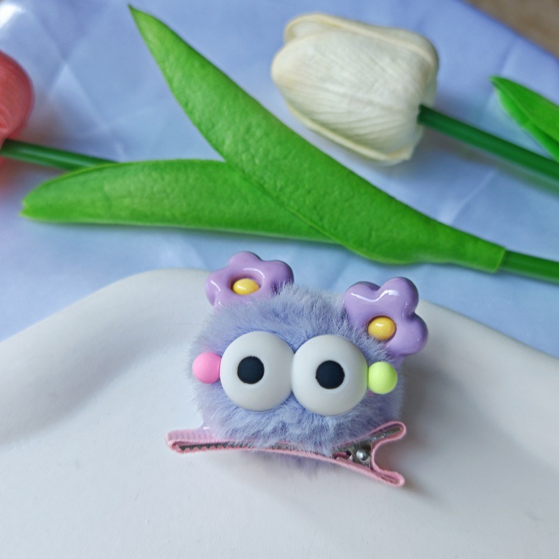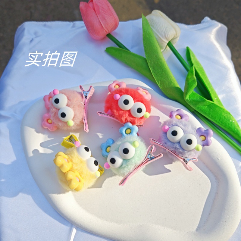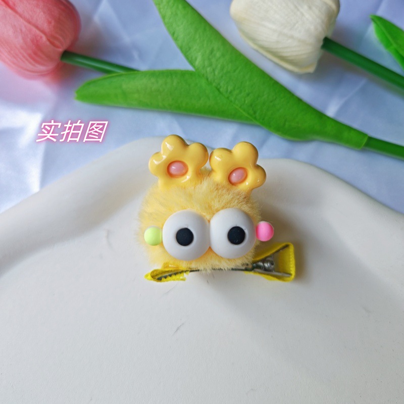 大眼仔毛球发夹可爱鸡蛋花耳朵发卡边夹韩版ins童趣刘海边夹发饰 English | 投诉
