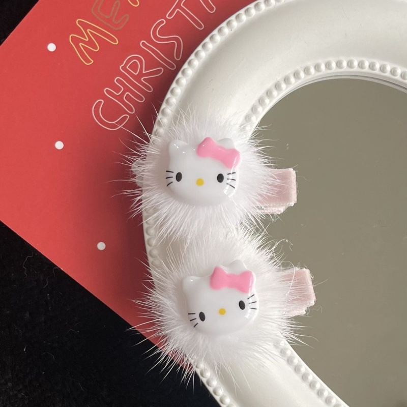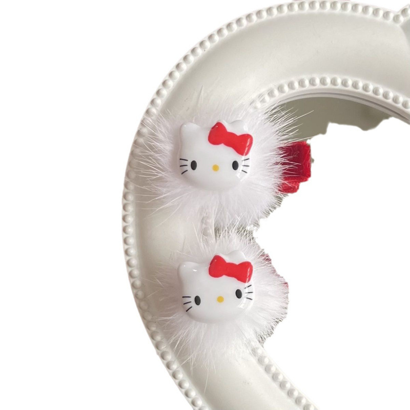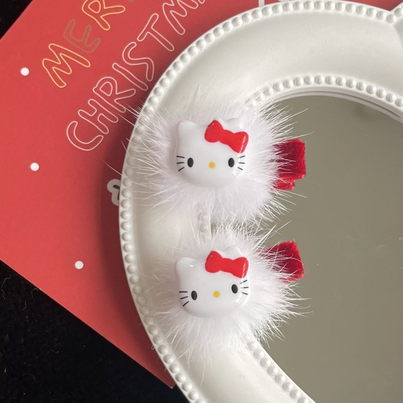 网ins可爱圣诞红爱心毛球发夹kt猫毛绒绒鸭嘴夹甜美秋冬新年发饰