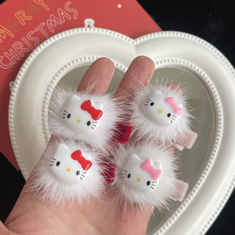 网ins可爱圣诞红爱心毛球发夹kt猫毛绒绒鸭嘴夹甜美秋冬新年发饰 English | 投诉