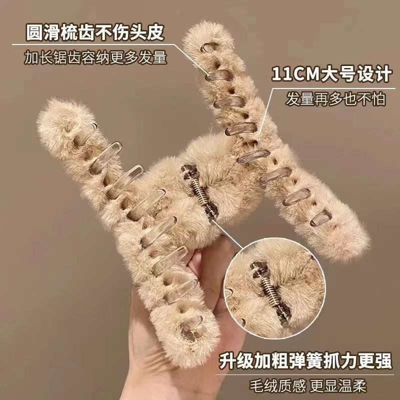 高级感秋冬毛绒大号抓夹鲨鱼夹套装高颜值头发夹子后脑勺盘发发饰 English | 投诉