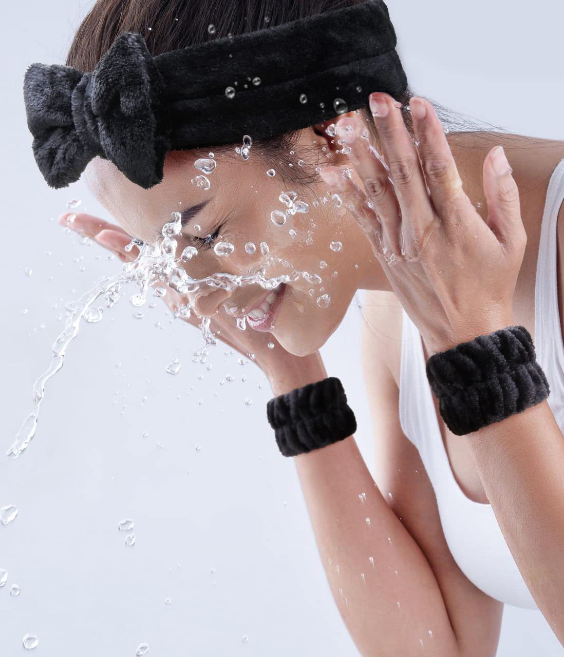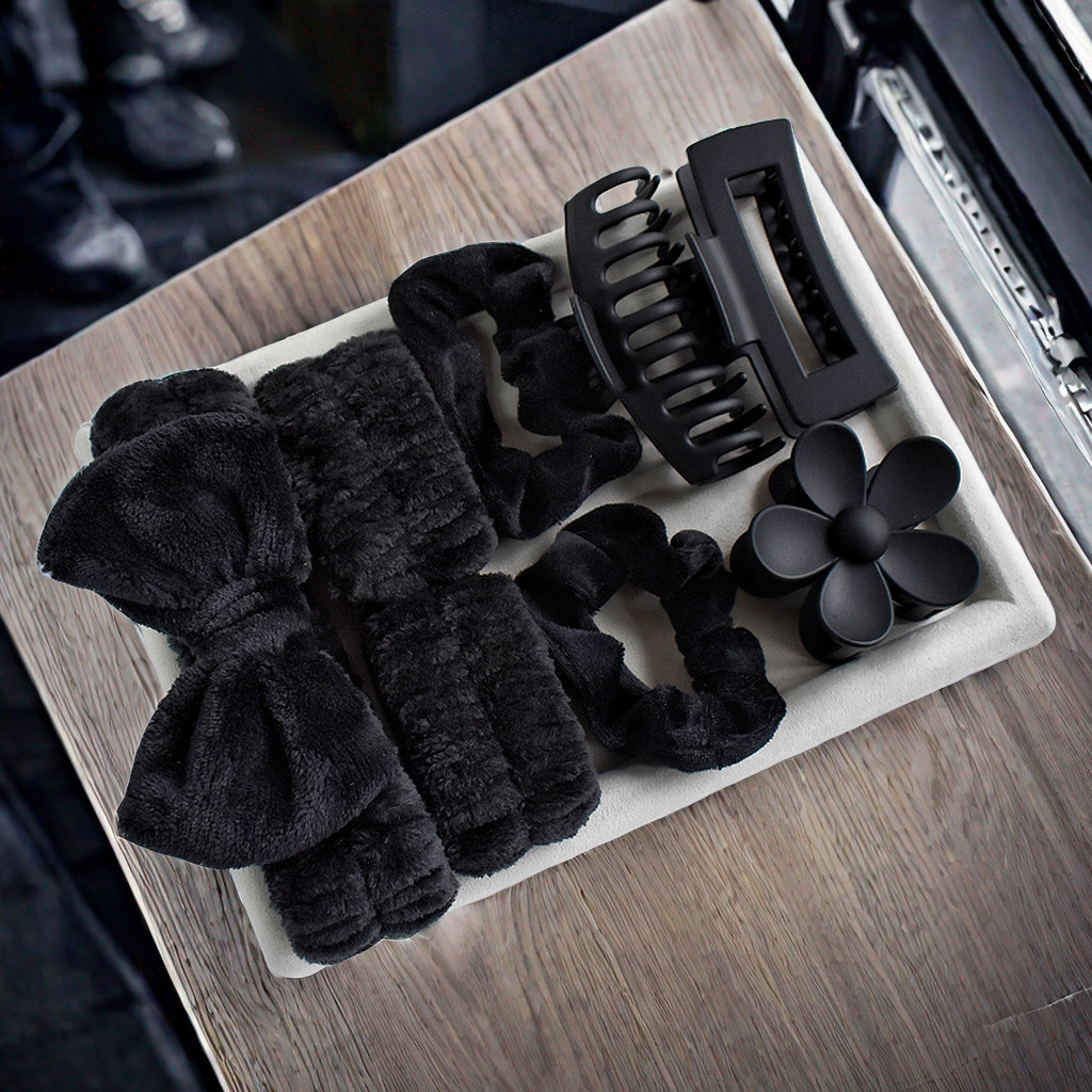跨境新款蝴蝶结洗漱发带腕带丝绒大肠圈哑光后脑勺抓夹8件套发夹