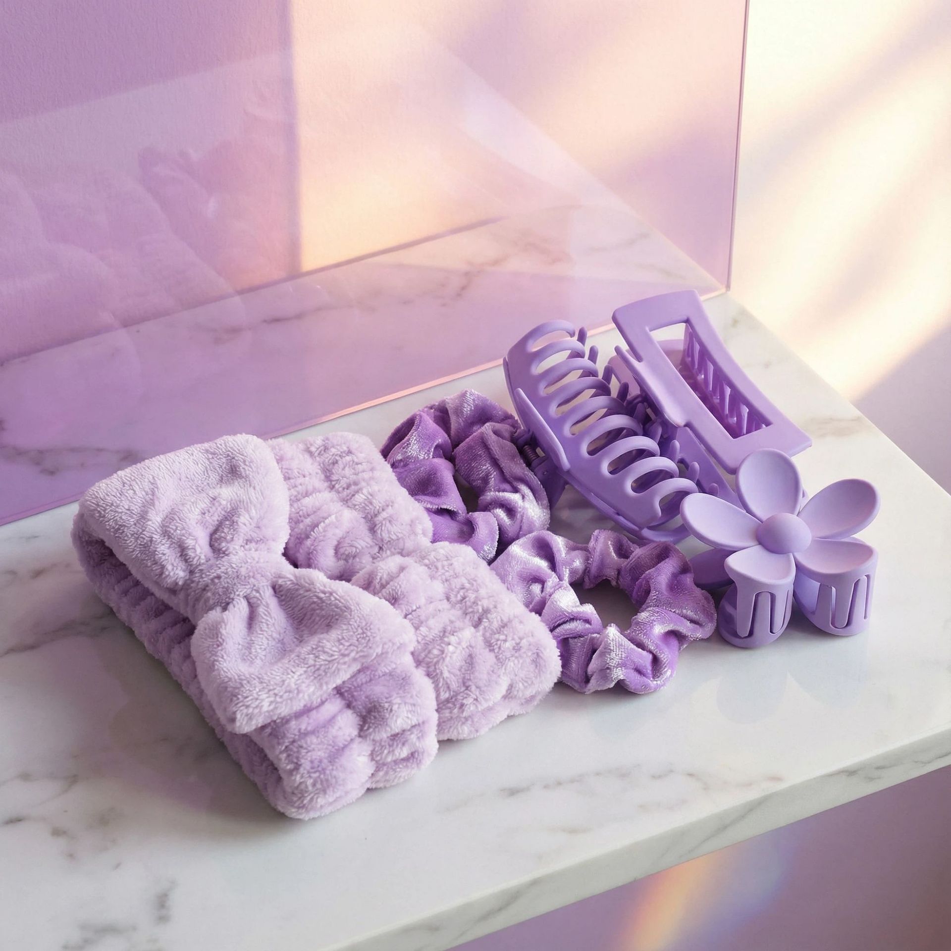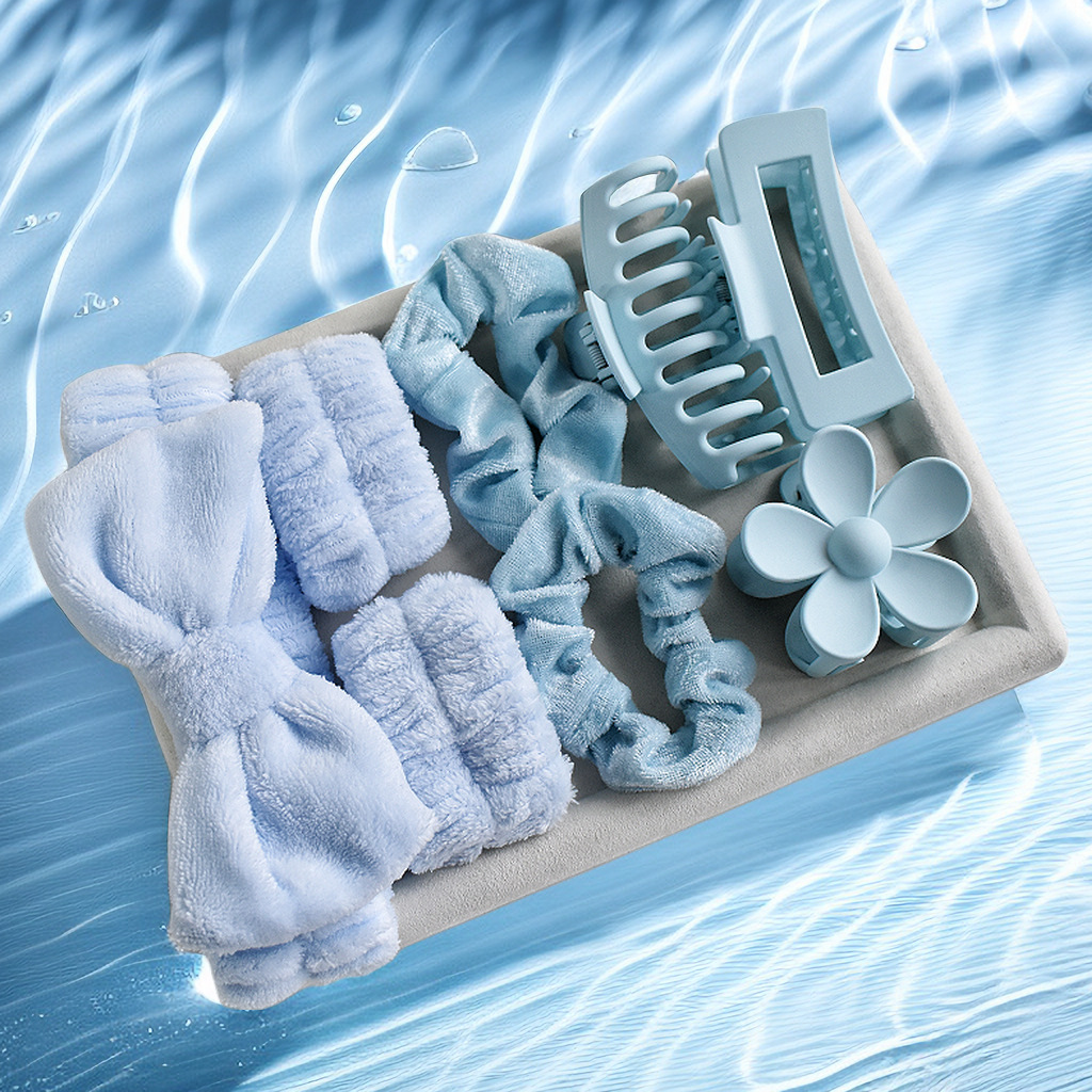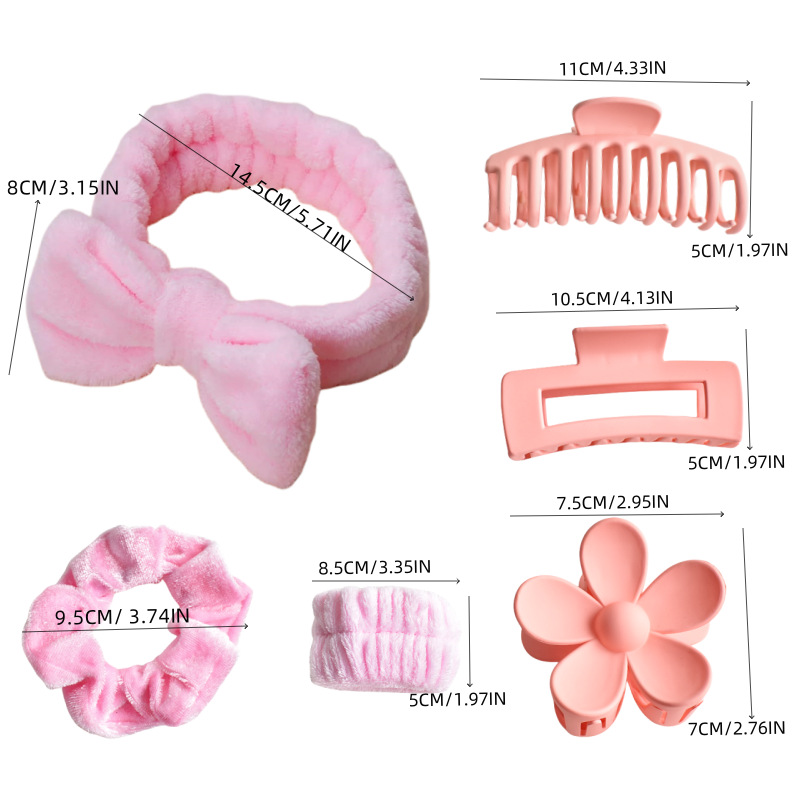 跨境新款蝴蝶结洗漱发带腕带丝绒大肠圈哑光后脑勺抓夹8件套发夹 English | 投诉