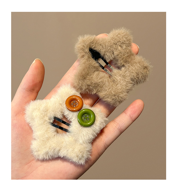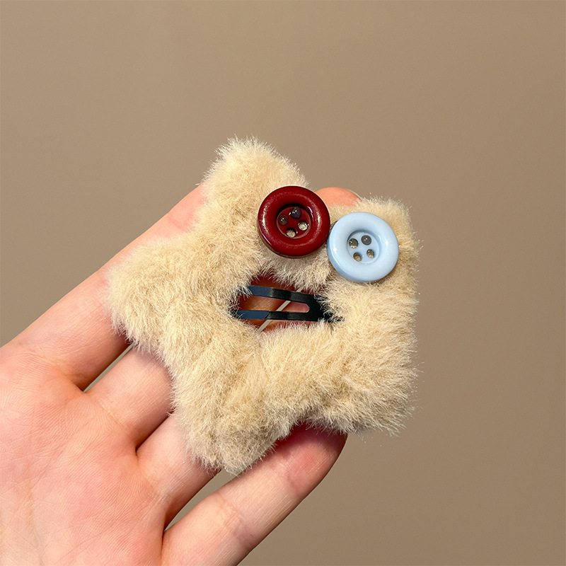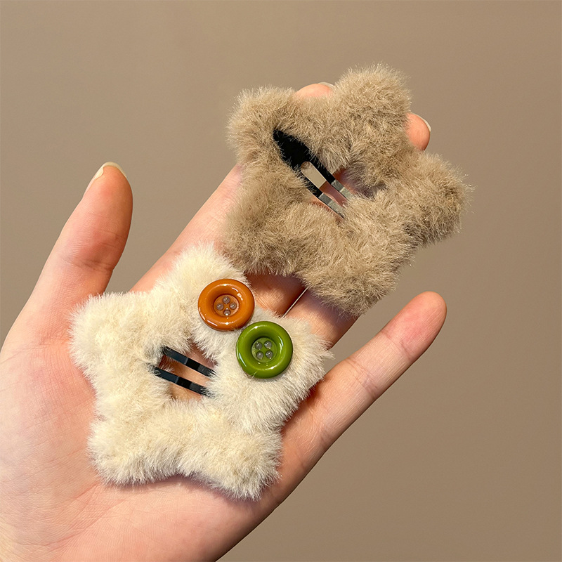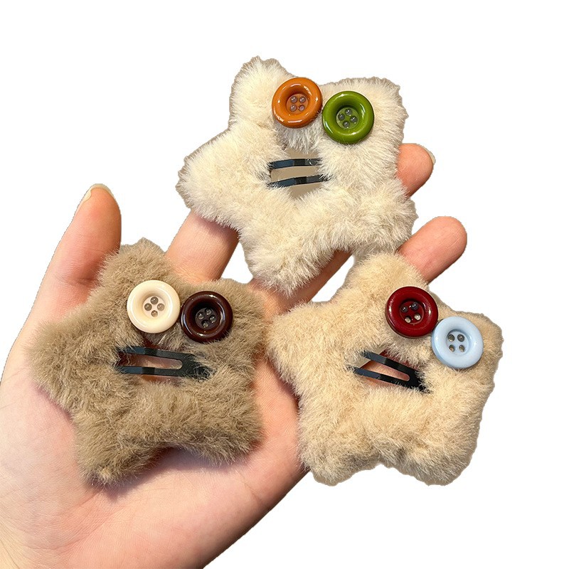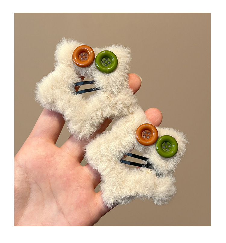 秋冬新款毛绒星星纽扣发夹刘海夹碎发边夹设计感毛绒绒发饰发卡子 English | 投诉