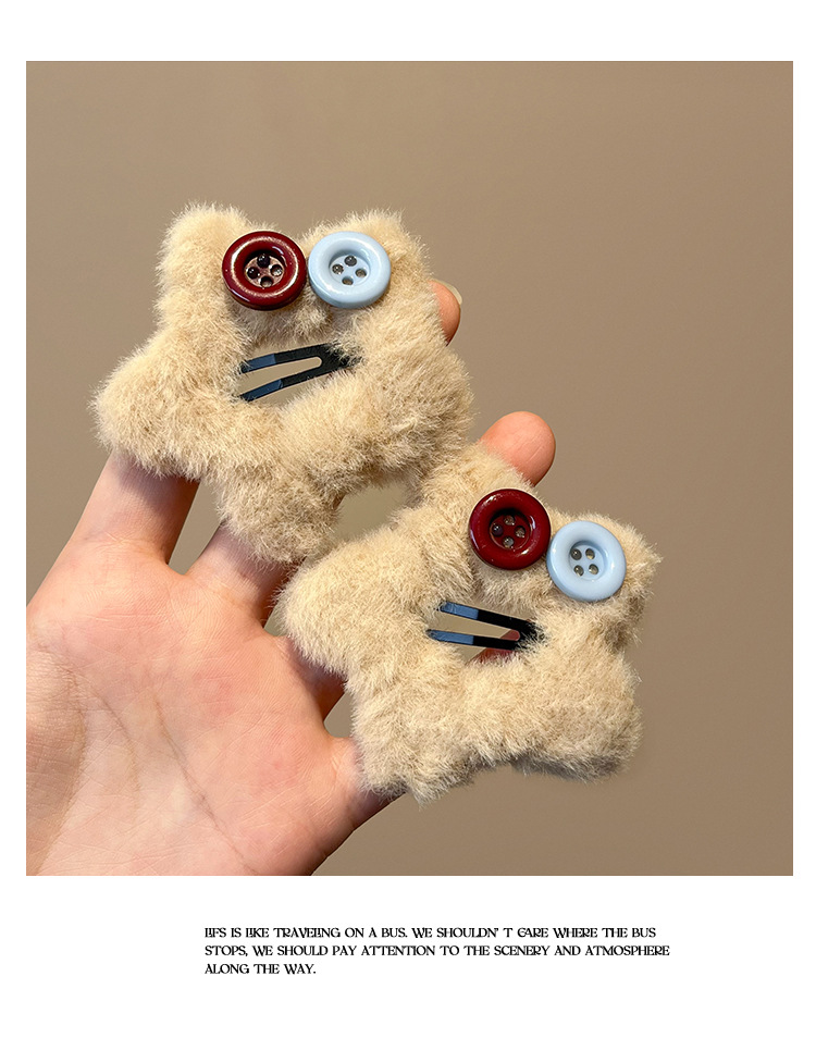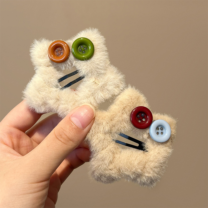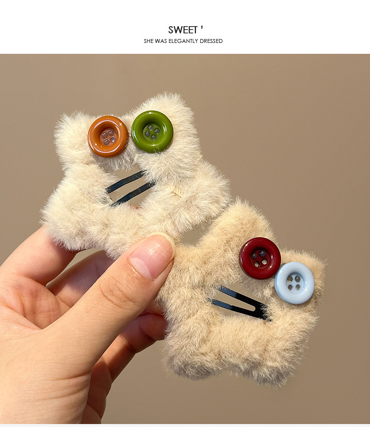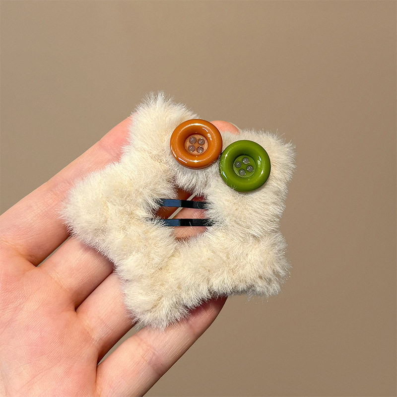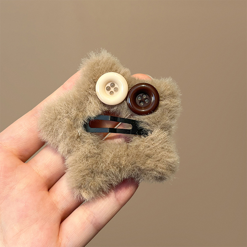 秋冬新款毛绒星星纽扣发夹刘海夹碎发边夹设计感毛绒绒发饰发卡子 English | 投诉