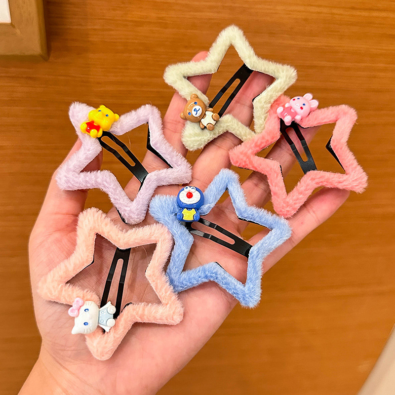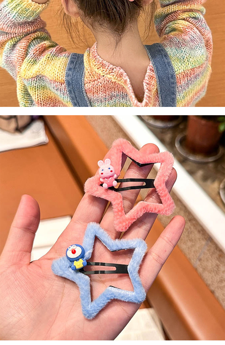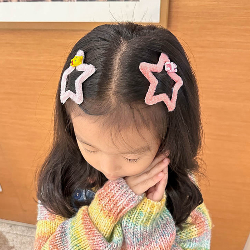秋冬新款儿童卡通五角星毛绒发夹刘海夹侧边夹清新可爱女童碎发夹 English | 投诉