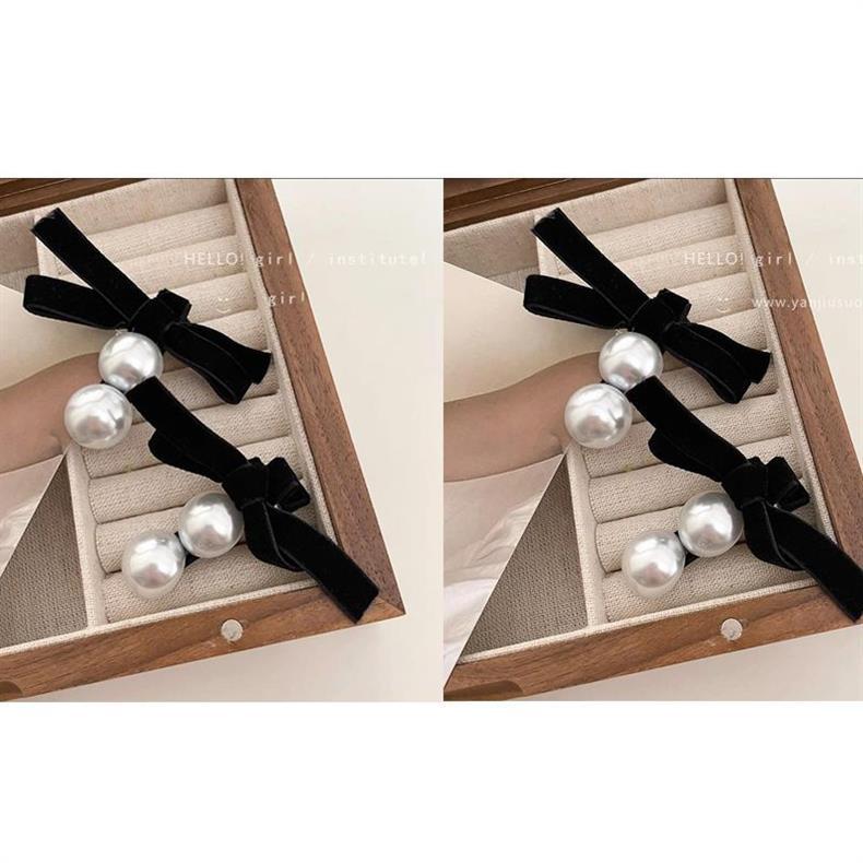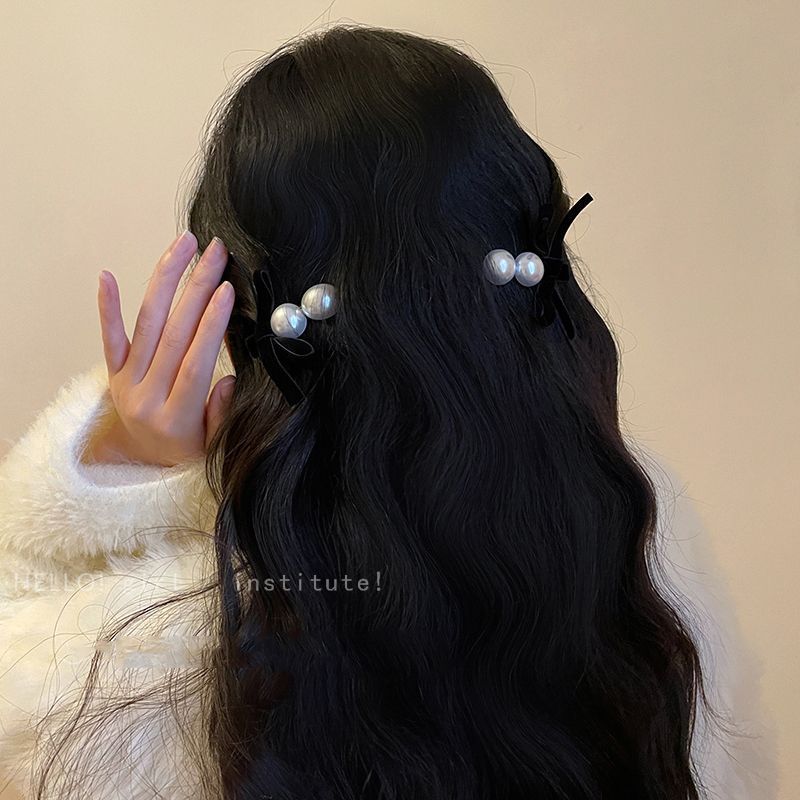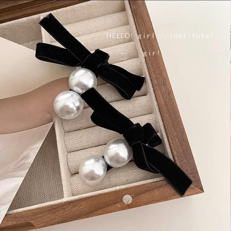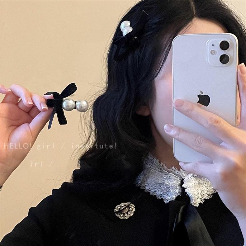 高档蝴蝶珍珠发夹女2024新款赫本风刘海发夹黑丝绒鸭嘴夹子头饰女 English | 投诉