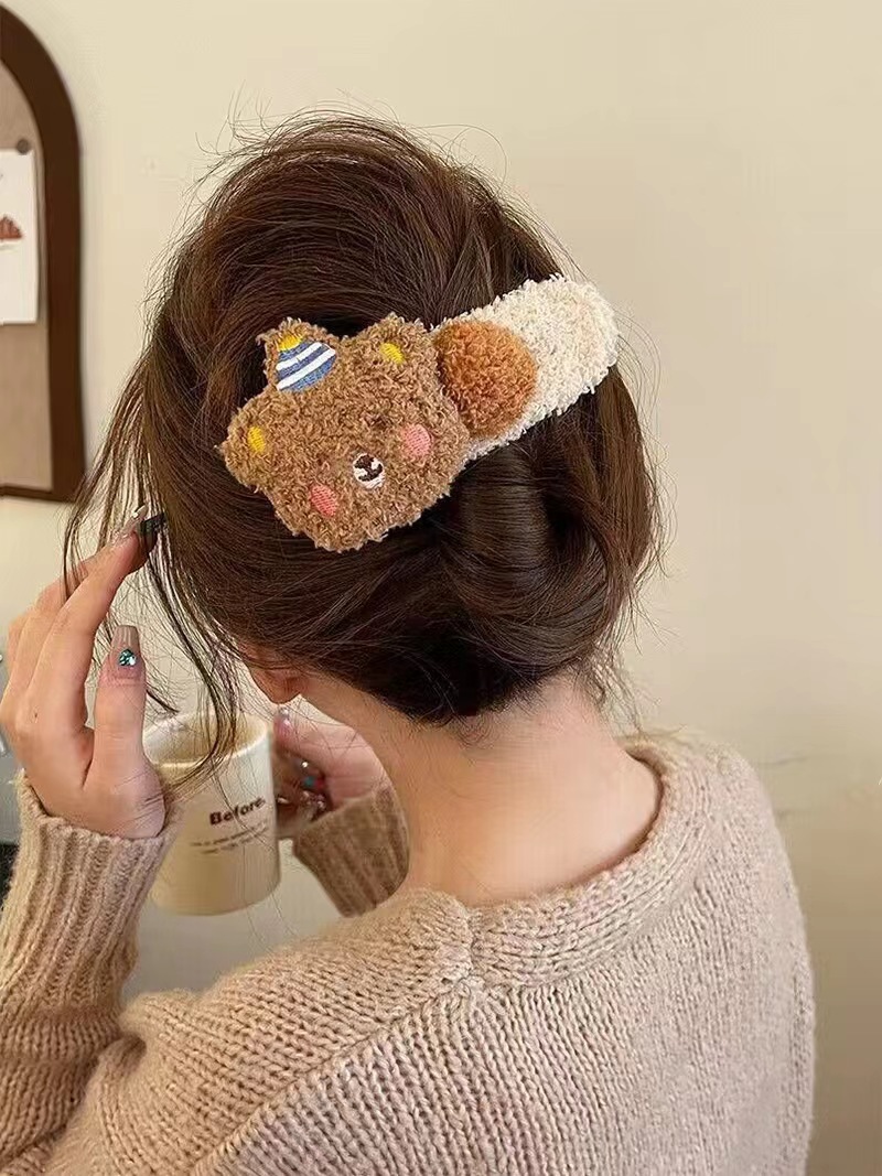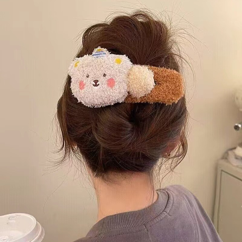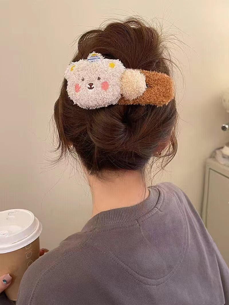 毛绒小熊大号鸭嘴夹女秋冬可爱发夹后脑勺发卡毛毛高级感夹子头饰 English | 投诉