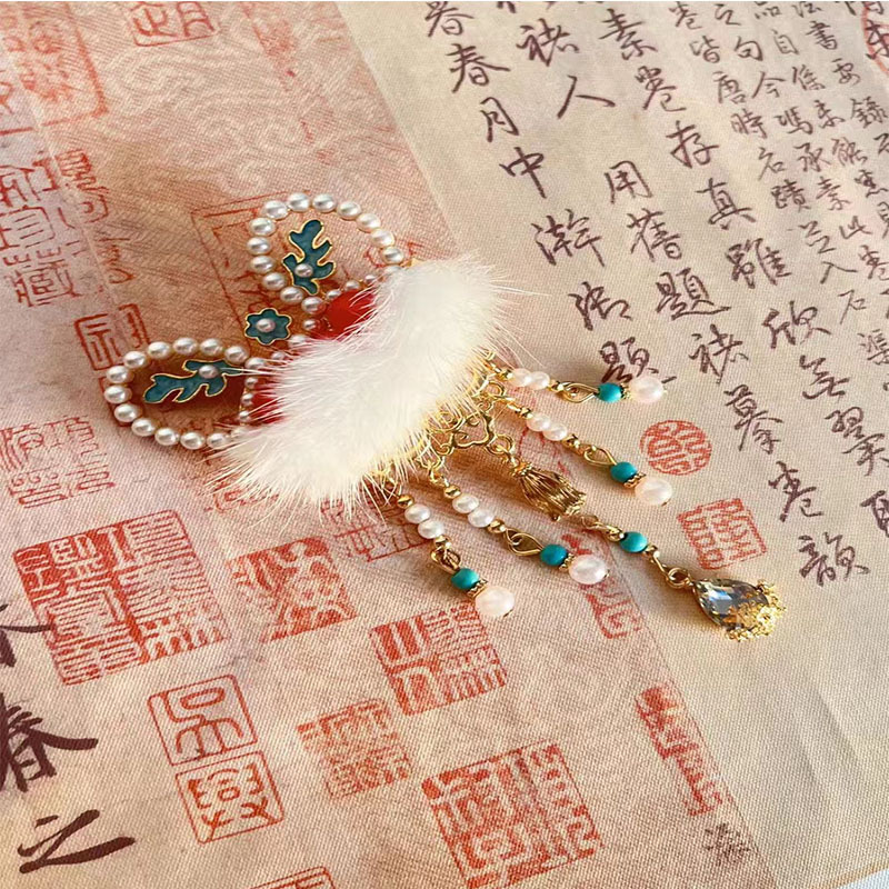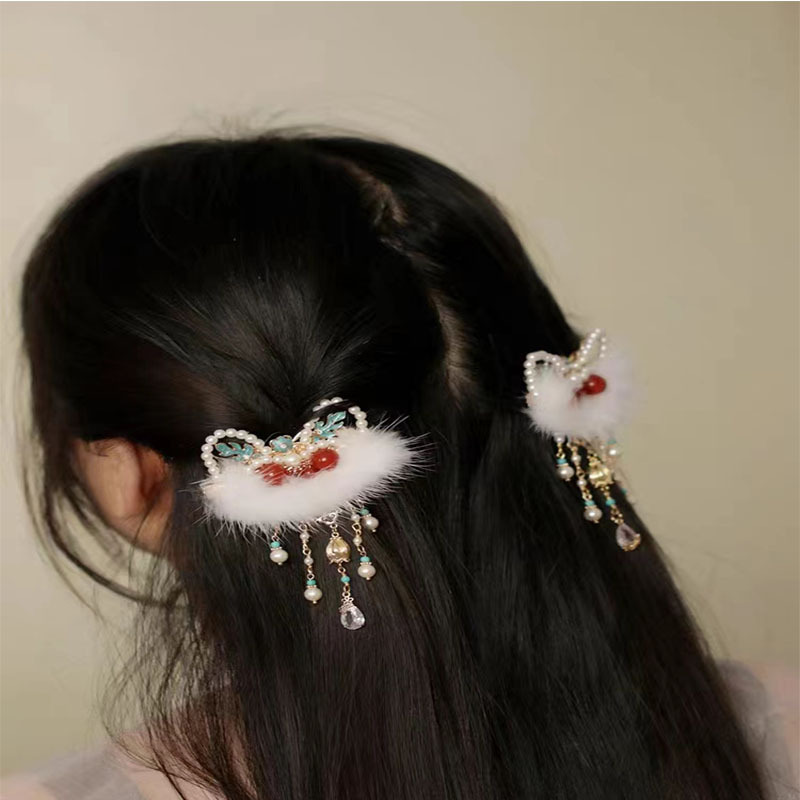 儿童可爱国风醒狮流苏新年发夹毛绒头饰汉服日常配饰红色不伤发 English | 投诉