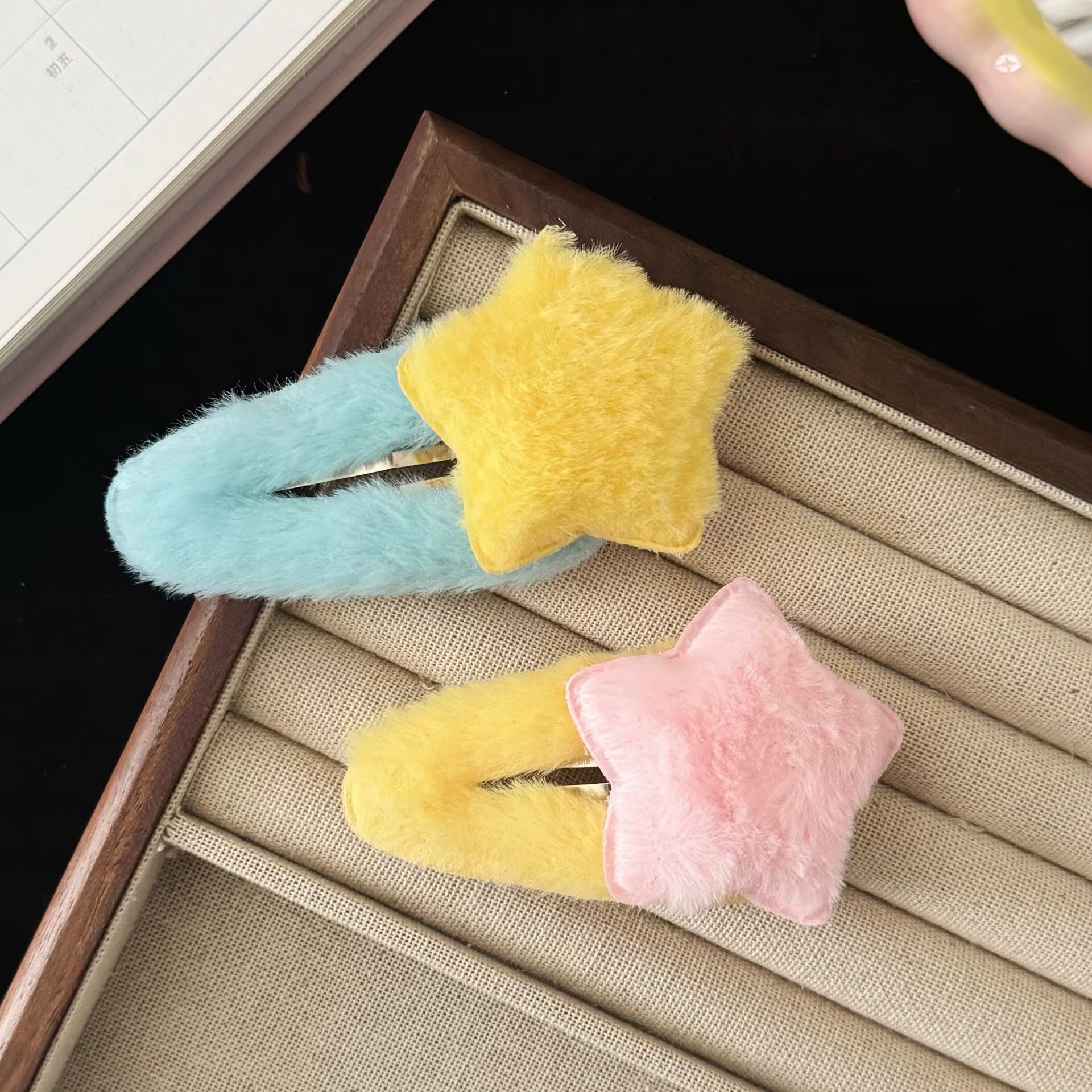 秋季新款糖果色毛绒星星掰掰夹可爱百搭女孩侧边刘海发卡发饰批发 English | 投诉