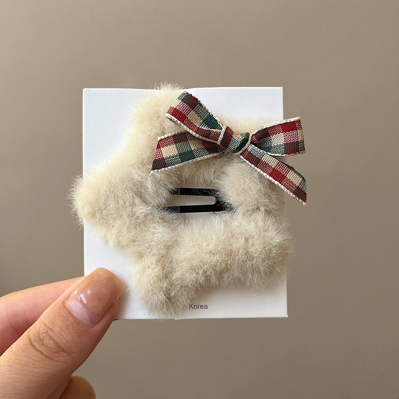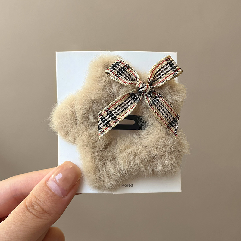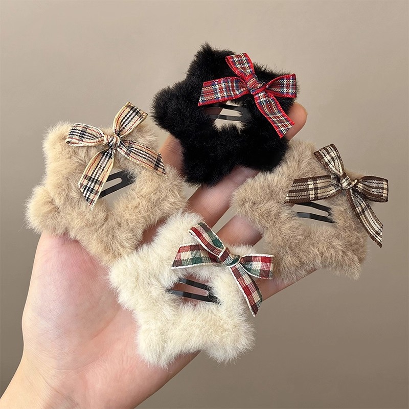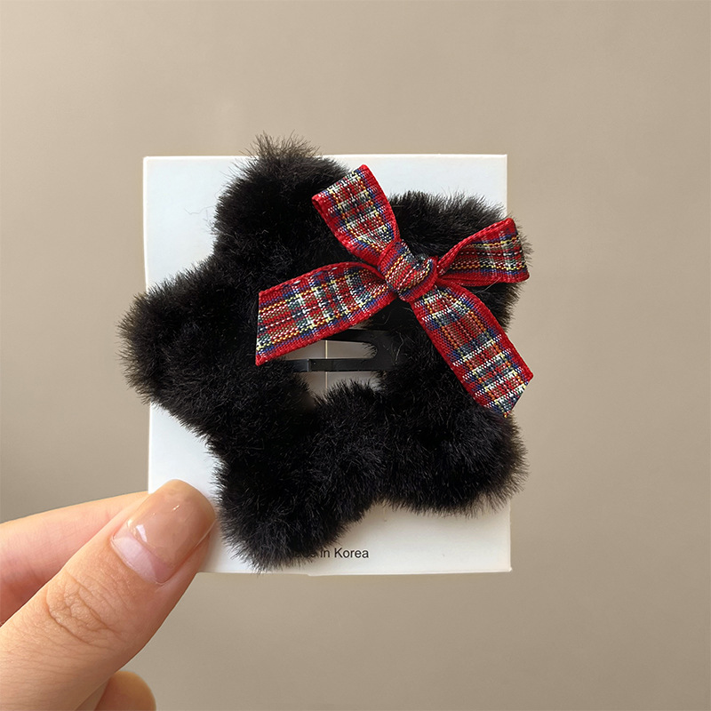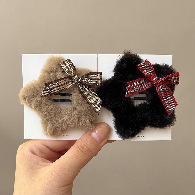 甜美蝴蝶结毛绒星星发卡女侧边刘海碎发夹头饰前额装饰鸭嘴夹发饰 English | 投诉