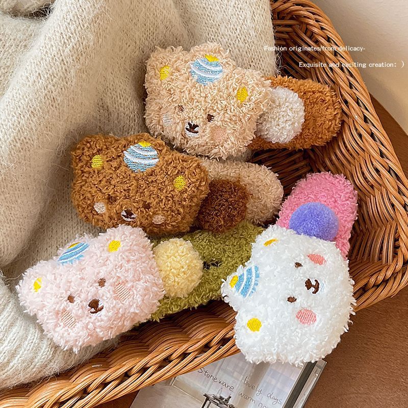 毛绒布丁熊可爱鸭嘴夹大号发夹头饰2025新款少女毛绒发夹发饰秋冬 English | 投诉