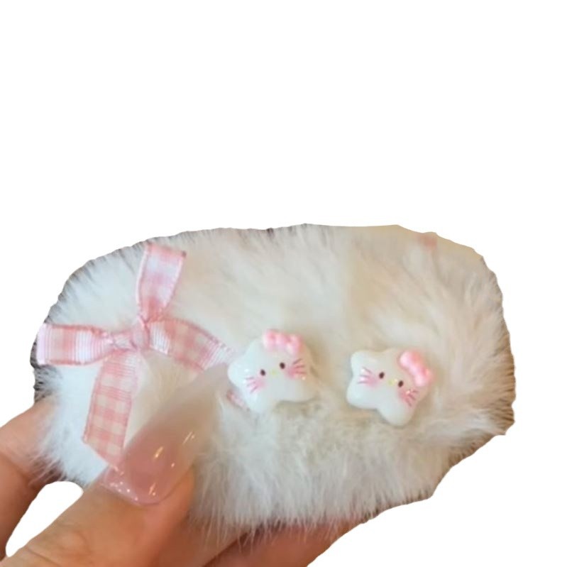 秋冬ins毛绒KT猫发夹毛茸茸星星卡通BB可爱发卡少女甜美发饰刘海 English | 投诉