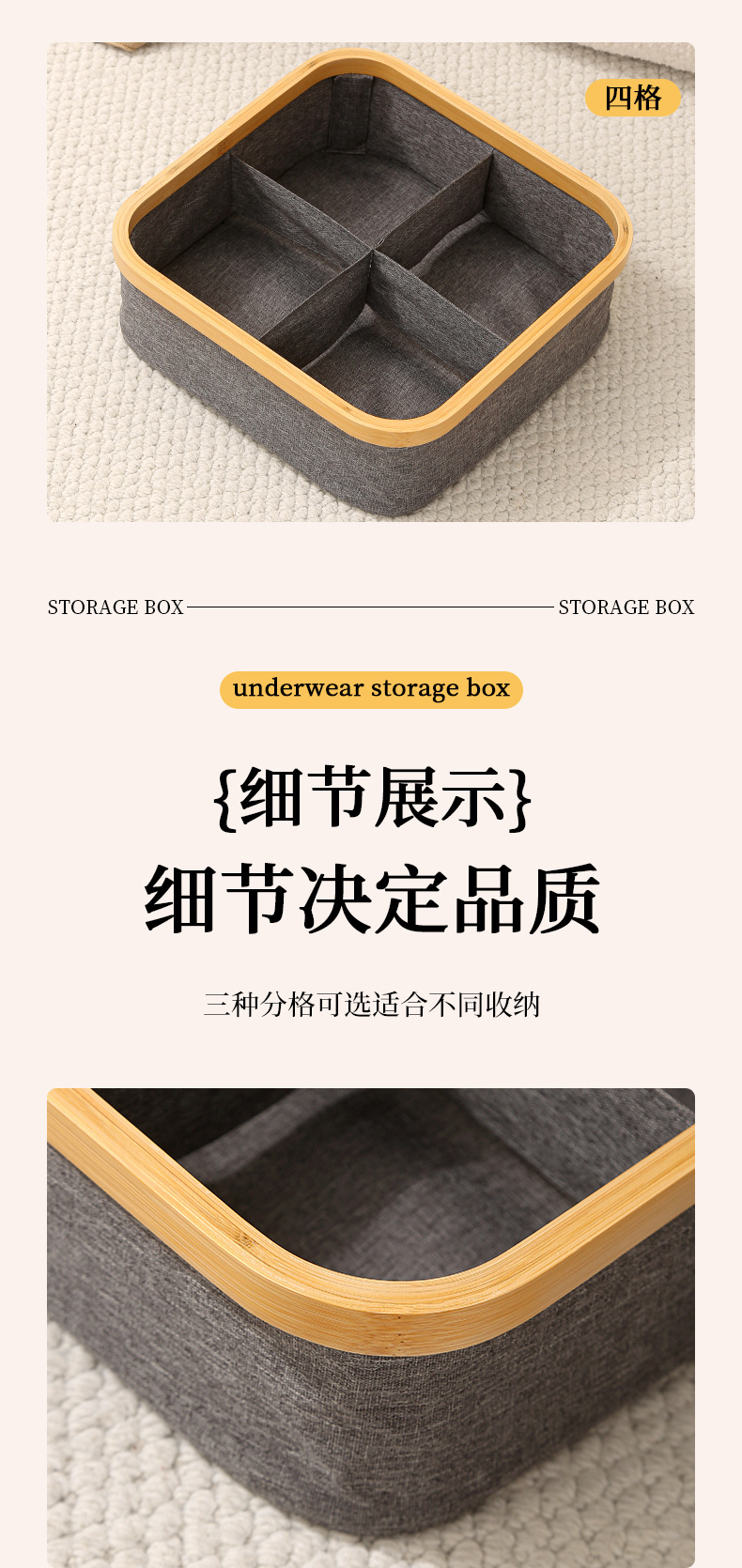 三宫格:内裤、小丝巾的 “收纳小管家”!3 个区域灵活分类,不管是抽屉还是衣柜,都能从 “乱糟糟” 一键切换成 “整齐划一”,视觉清爽还方便拿取~
