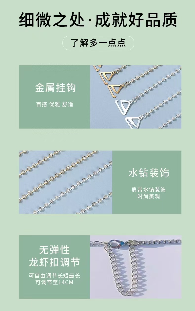 细节:水钻均采用合金链串联,美观时尚,结实耐用