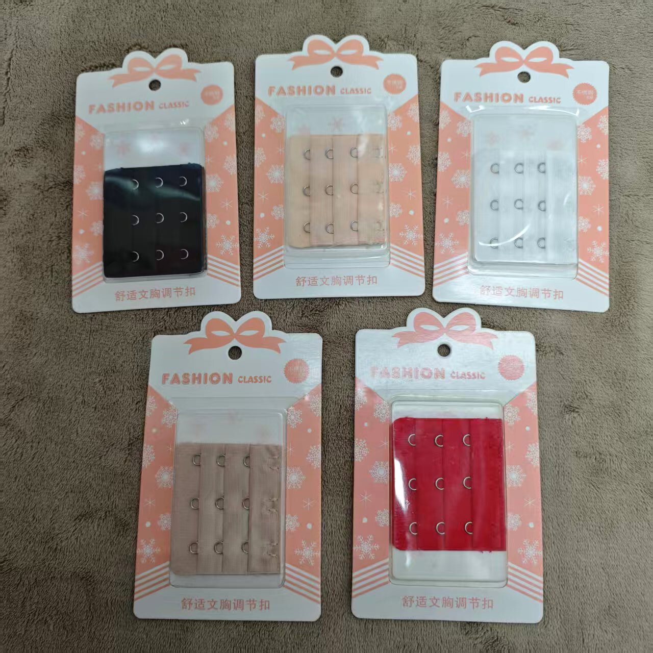 功能:延长文胸下围围度,解决文胸下围过紧带来的烦恼,加在内衣扣上相当于下围加长了一个级别